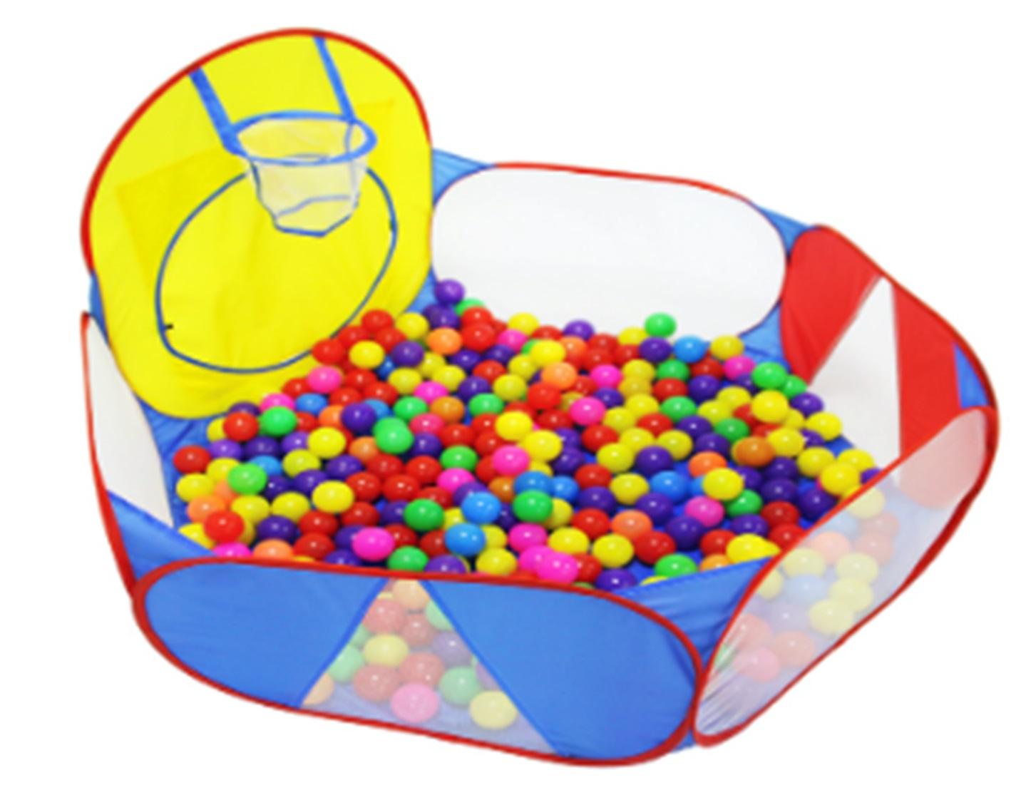 - Развитие и развлечение: Палатка-бассейн стимулирует воображение и физическую активность. Кольцо для бросков добавляет элемент соревнования и веселья.