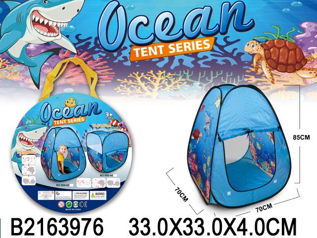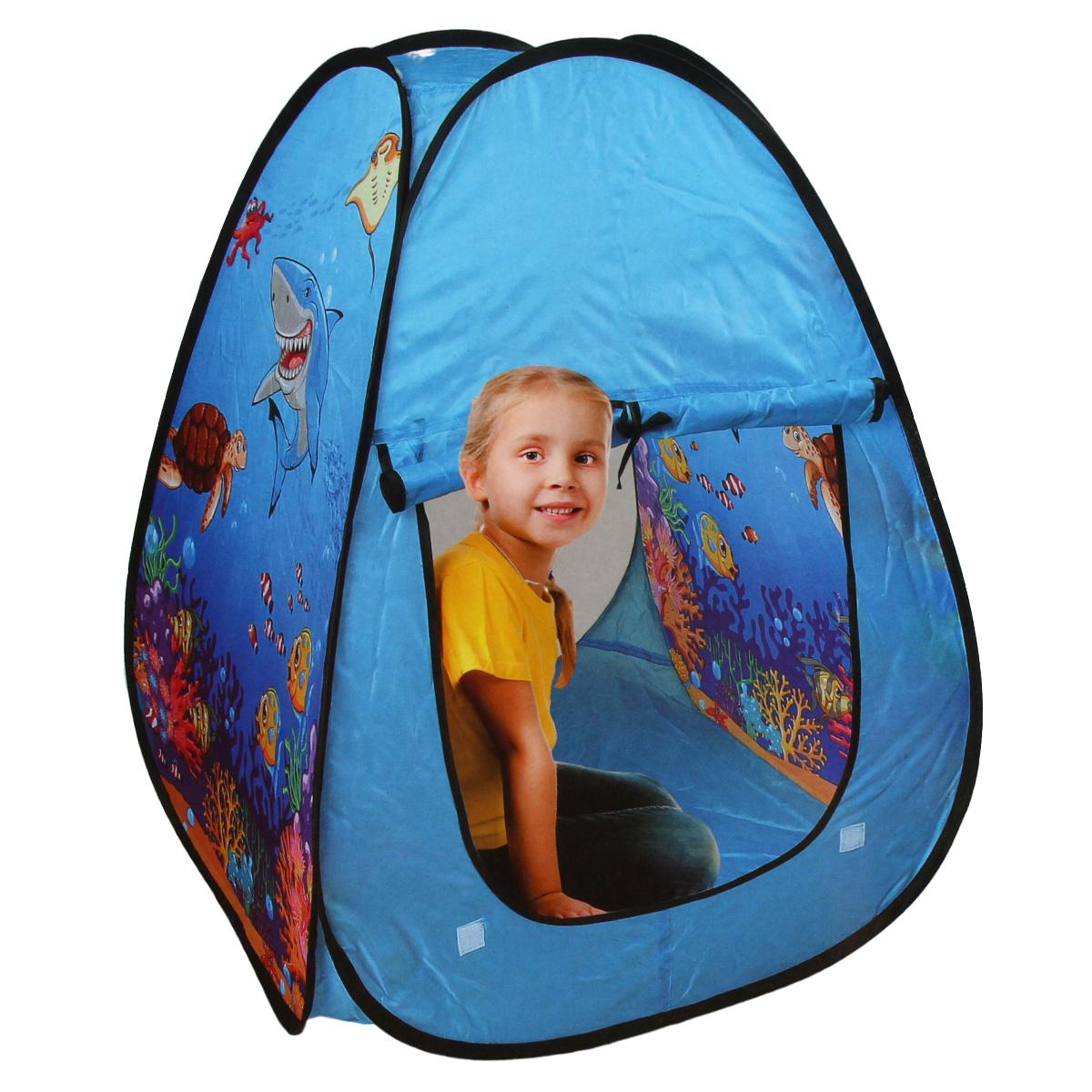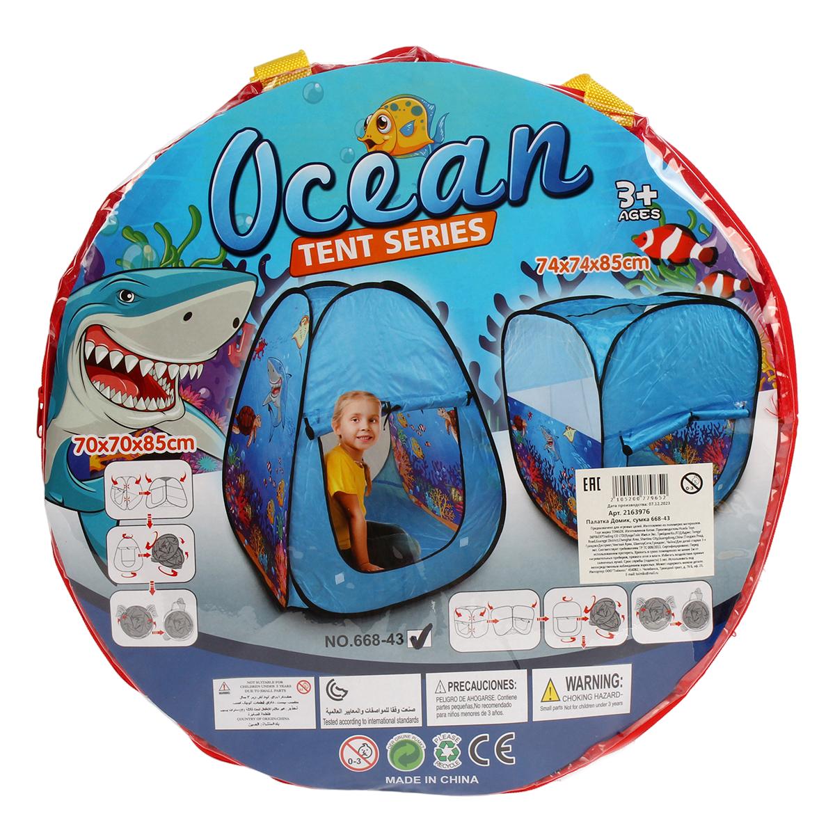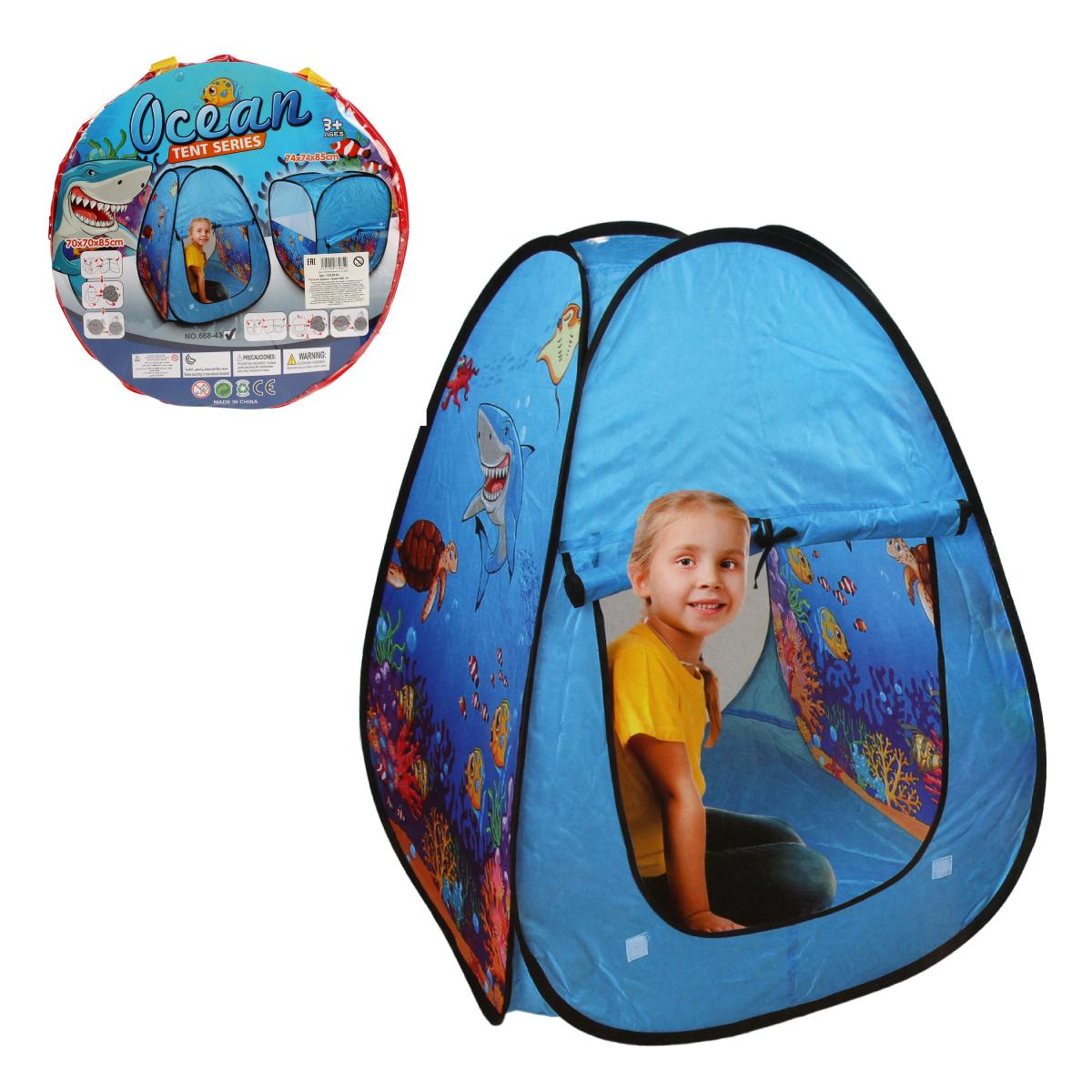 Палатка детская «Ocean» 70х70х85см, голубая с акулами и черепахами, плащевка, сумка в комплекте