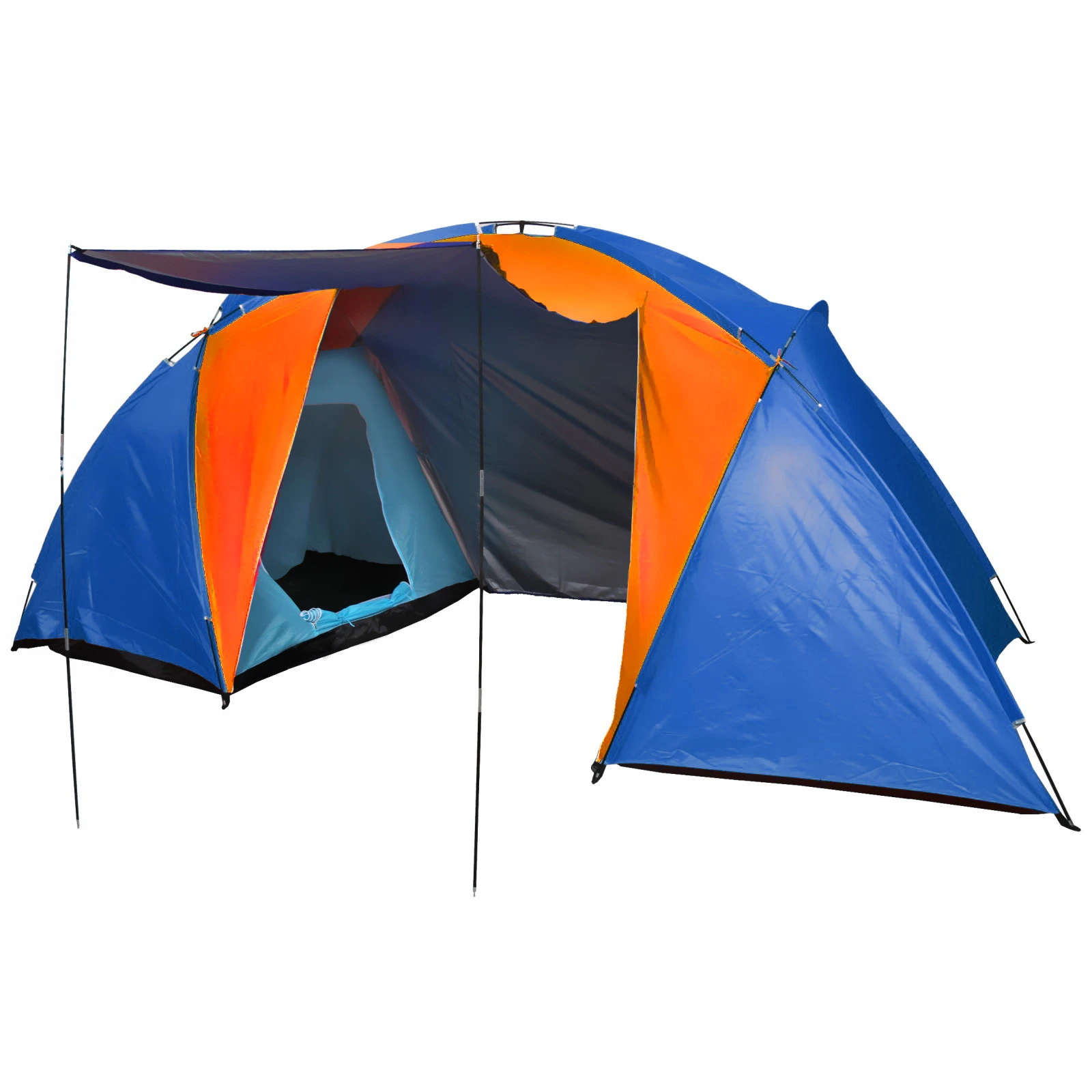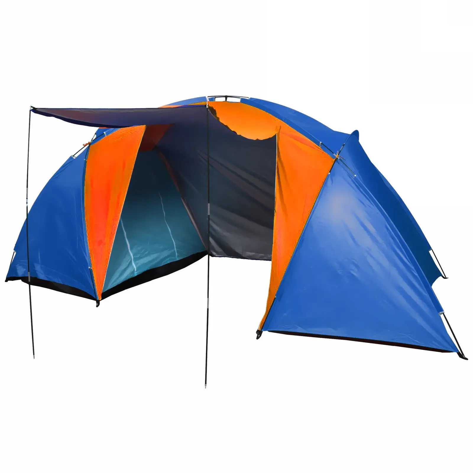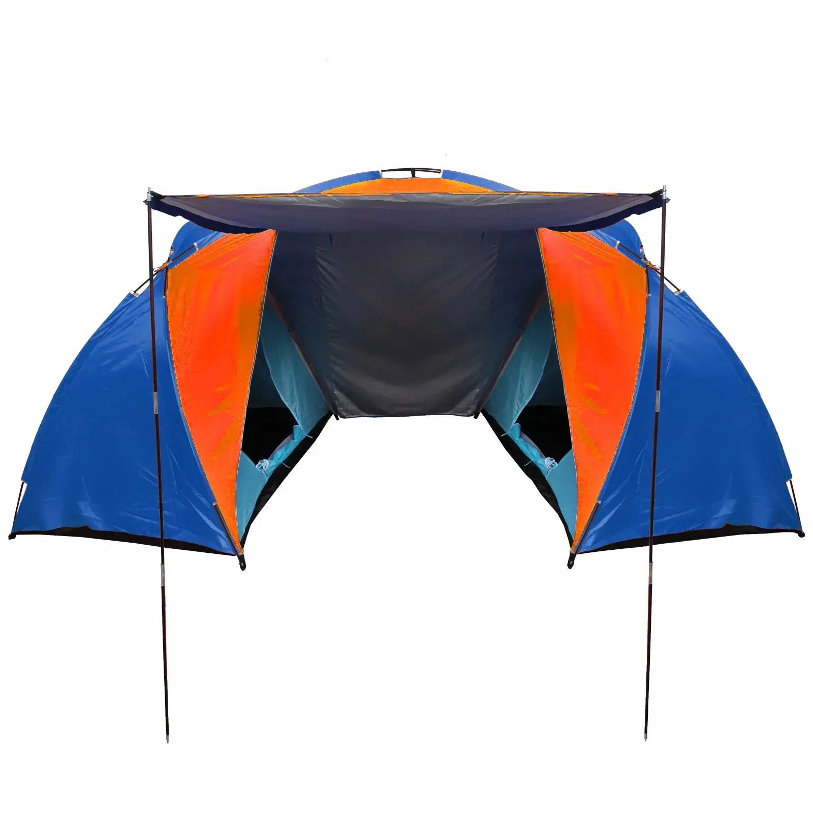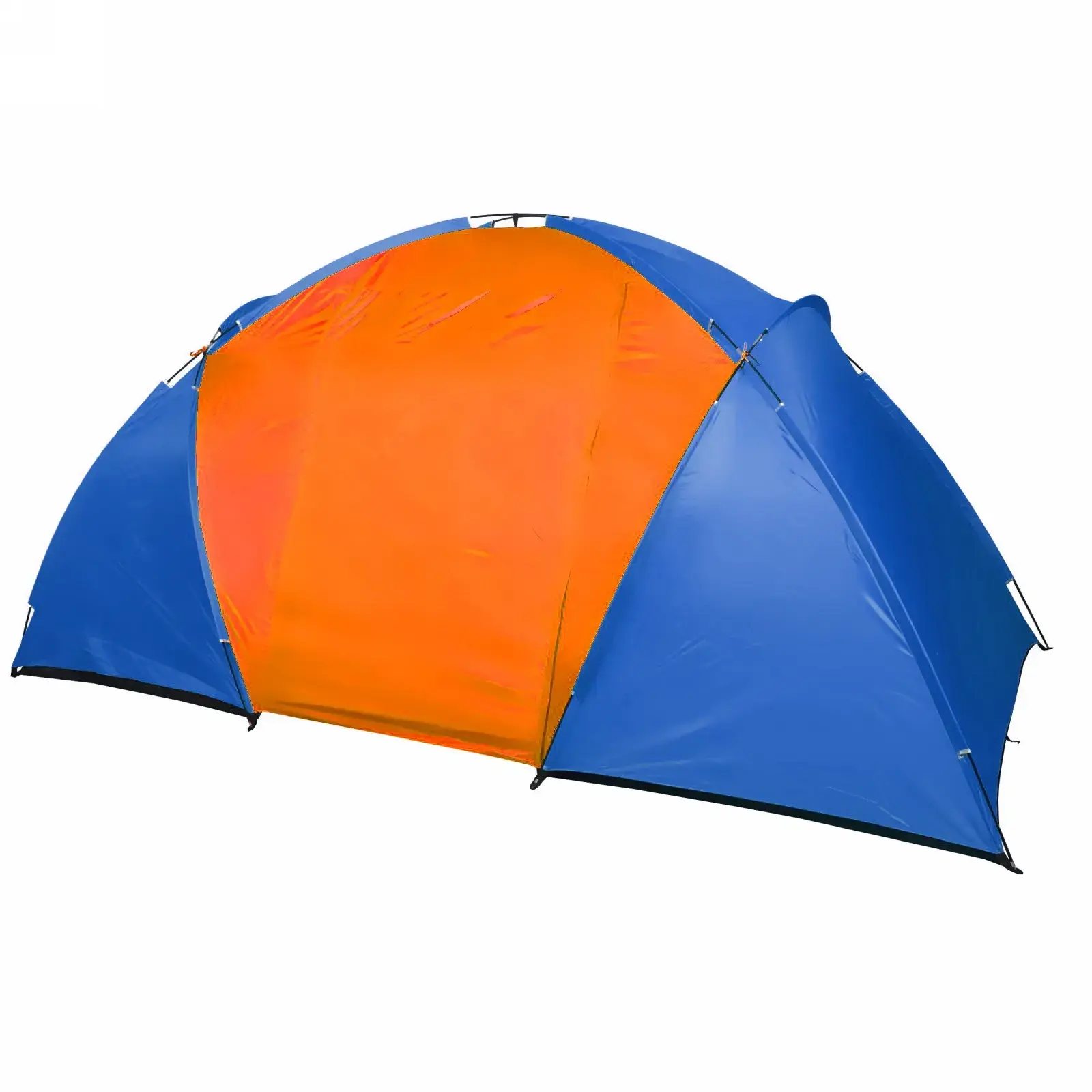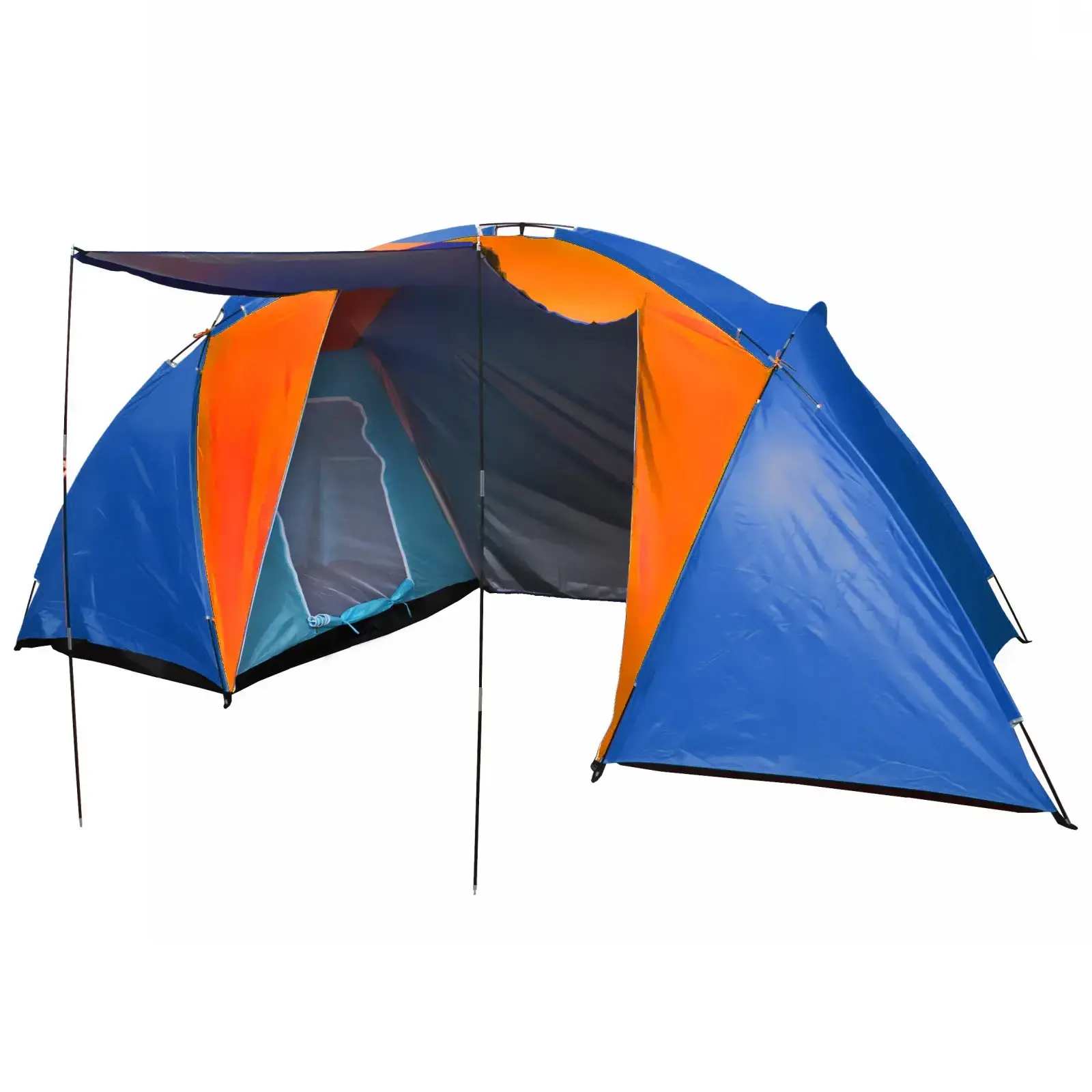 Размер палатки составляет 210х240х130 см, что обеспечивает достаточно пространства для комфортного размещения. Цветовая гамма оранжево-синяя не только привлекает внимание, но и делает палатку заметной на фоне природы. Легкая и компактная, палатка легко помещается в сумку для транспортировки, что делает ее удобной для путешествий.
