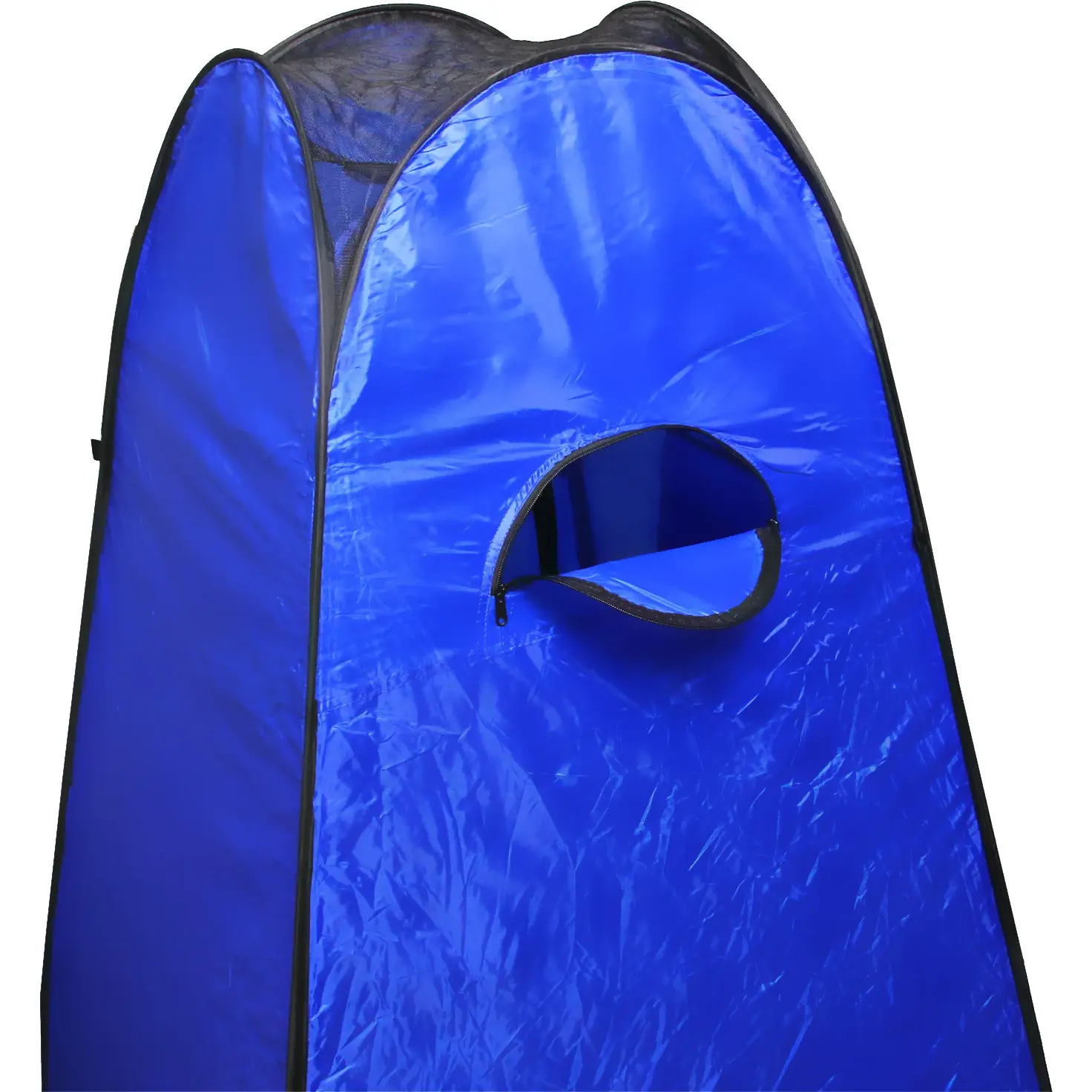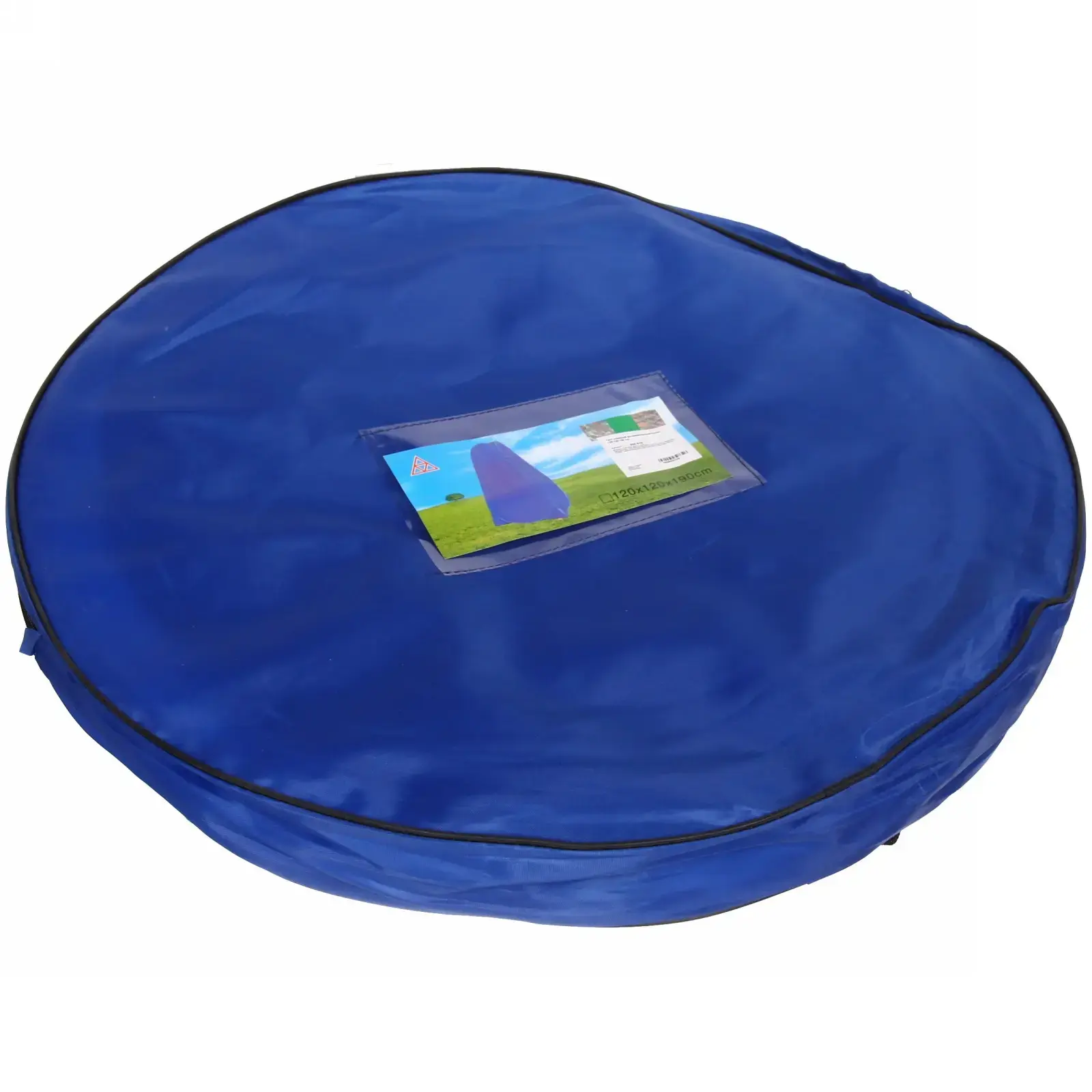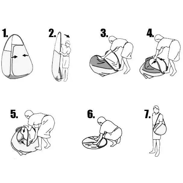 Каркас из усиленных металлических дуг и пластиковых соединителей обеспечивает устойчивость даже при сильном ветре. Водоотталкивающий текстиль с UPF-защитой предотвращает проникновение солнечных лучей, а отсутствие днища позволяет устанавливать палатку на любой поверхности.