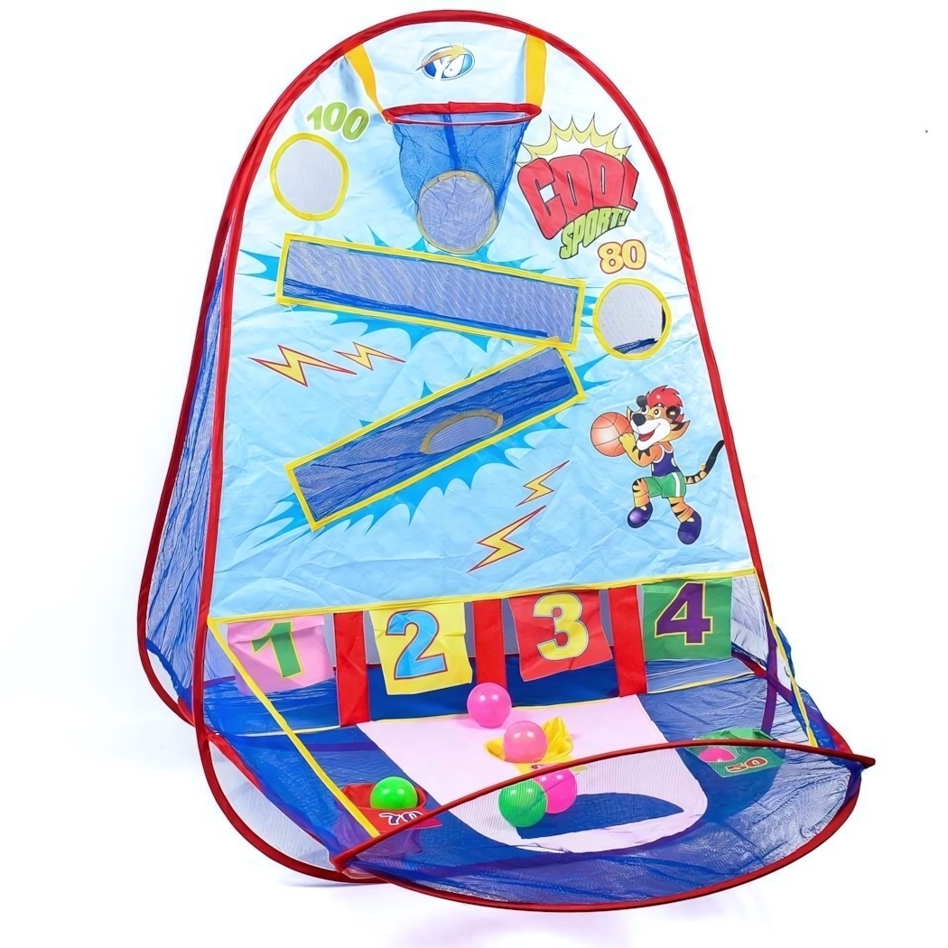 Приблизительные размеры в разложенном виде: 80х80х90 см. Материалы: пластик, металл, текстиль. В комплекте 10 пластиковых шариков.
