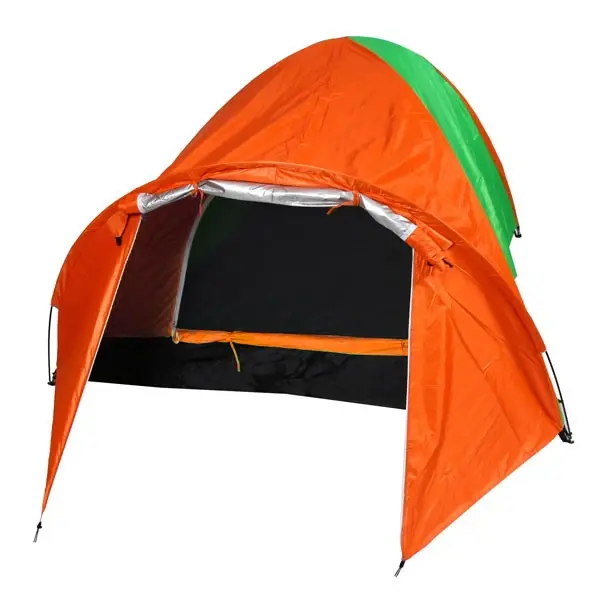 Палатка Кама-3 состоит из двух тентов: внутреннего и внешнего, что позволяет эффективно регулировать температуру и влажность внутри. Внутренний слой выполнен из дышащего полиэстера и оснащен вентиляционным окном, что обеспечивает комфортное пребывание даже в жаркую погоду. Удобный вместительный тамбур перед входом позволяет хранить вещи и защищает их от промокания в дождливую погоду.