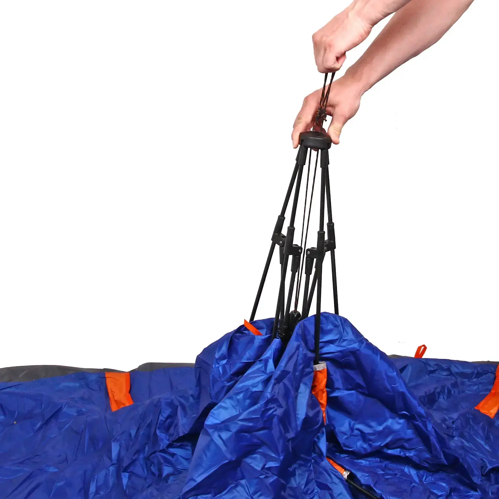 Палатка устанавливается всего за 1-2 минуты благодаря уникальному зонтичному механизму. Вам не понадобятся растяжки, что экономит пространство вокруг палатки и упрощает процесс установки. Это особенно удобно для тех, кто ценит время и комфорт.