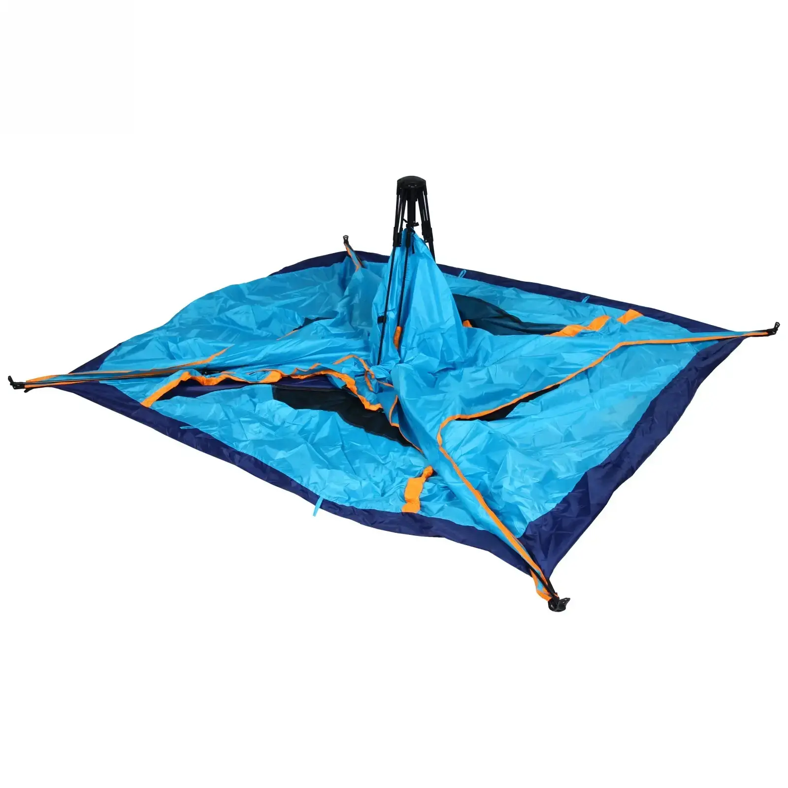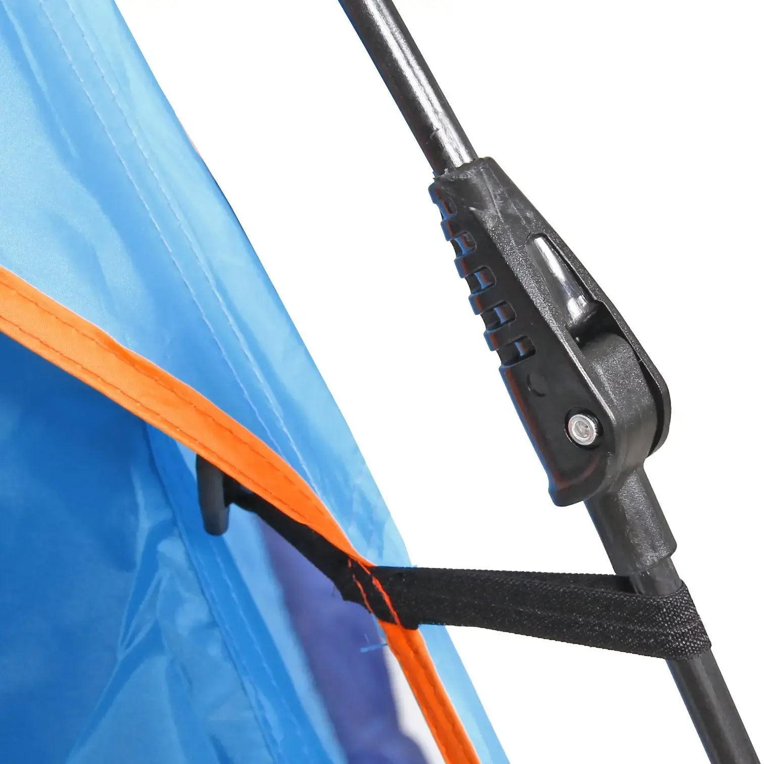 Палатка имеет синий цвет с оранжевыми элементами, что делает ее заметной и стильной. Внутри предусмотрены сетчатые окна для вентиляции, а также крепления для растяжек, что обеспечивает дополнительную устойчивость. Размеры палатки: 200 см в ширину, 200 см в длину и 145 см в высоту. Это идеальный выбор для тех, кто ищет сочетание качества, удобства и практичности.
