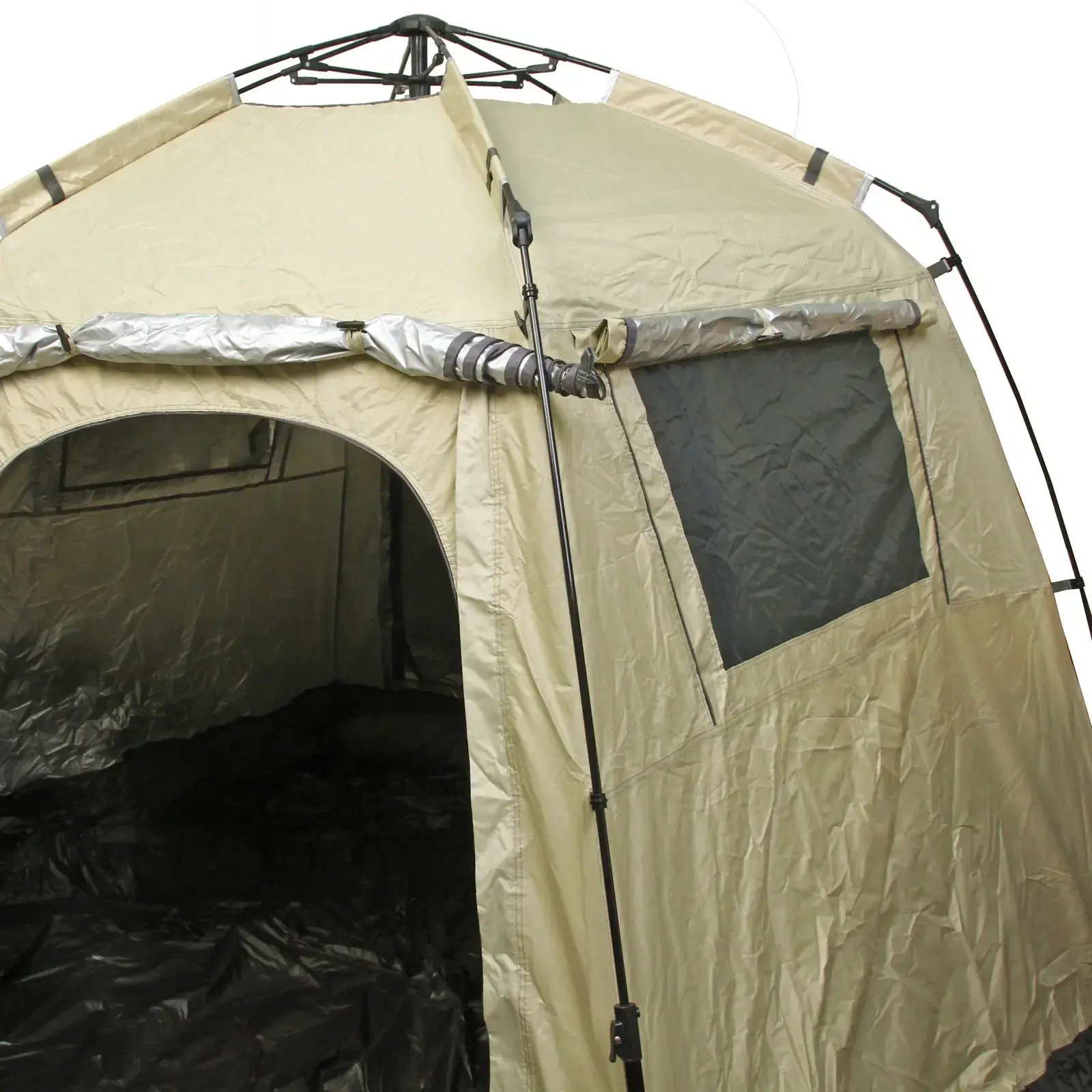 Палатка оснащена удобным входом и окнами, которые обеспечивают отличную вентиляцию и позволяют наслаждаться видами окружающей природы. Внутри вы найдете множество карманов для хранения ваших вещей и снаряжения, а также специальный карман для документов и мелочей. Автоматический механизм установки позволяет быстро и легко разложить палатку всего за несколько минут, что особенно удобно для тех, кто ценит своё время.