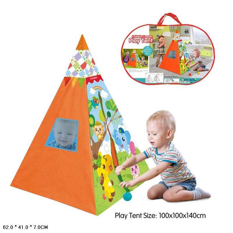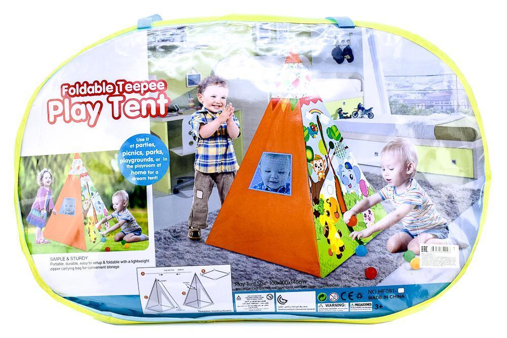 Палатка детская игровая Вигвам, 100х100х140 см, оранжевая с рисунками животных, складная, для дома и улицы