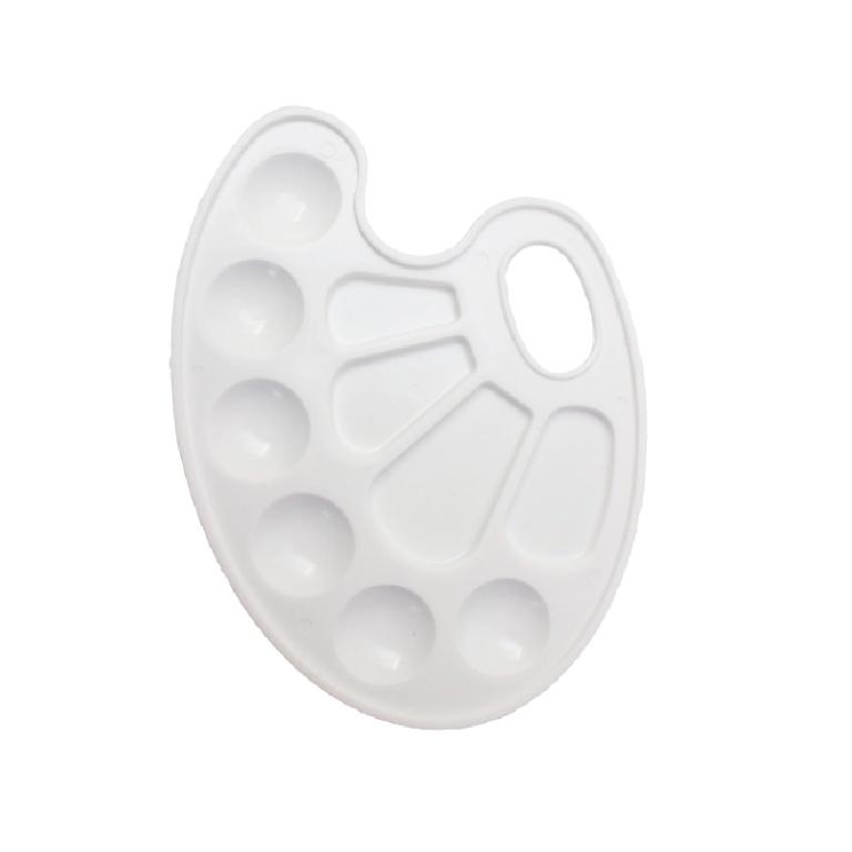 - Качество: палитра изготовлена из прочного белого пластика, который легко очищается и не впитывает краски.