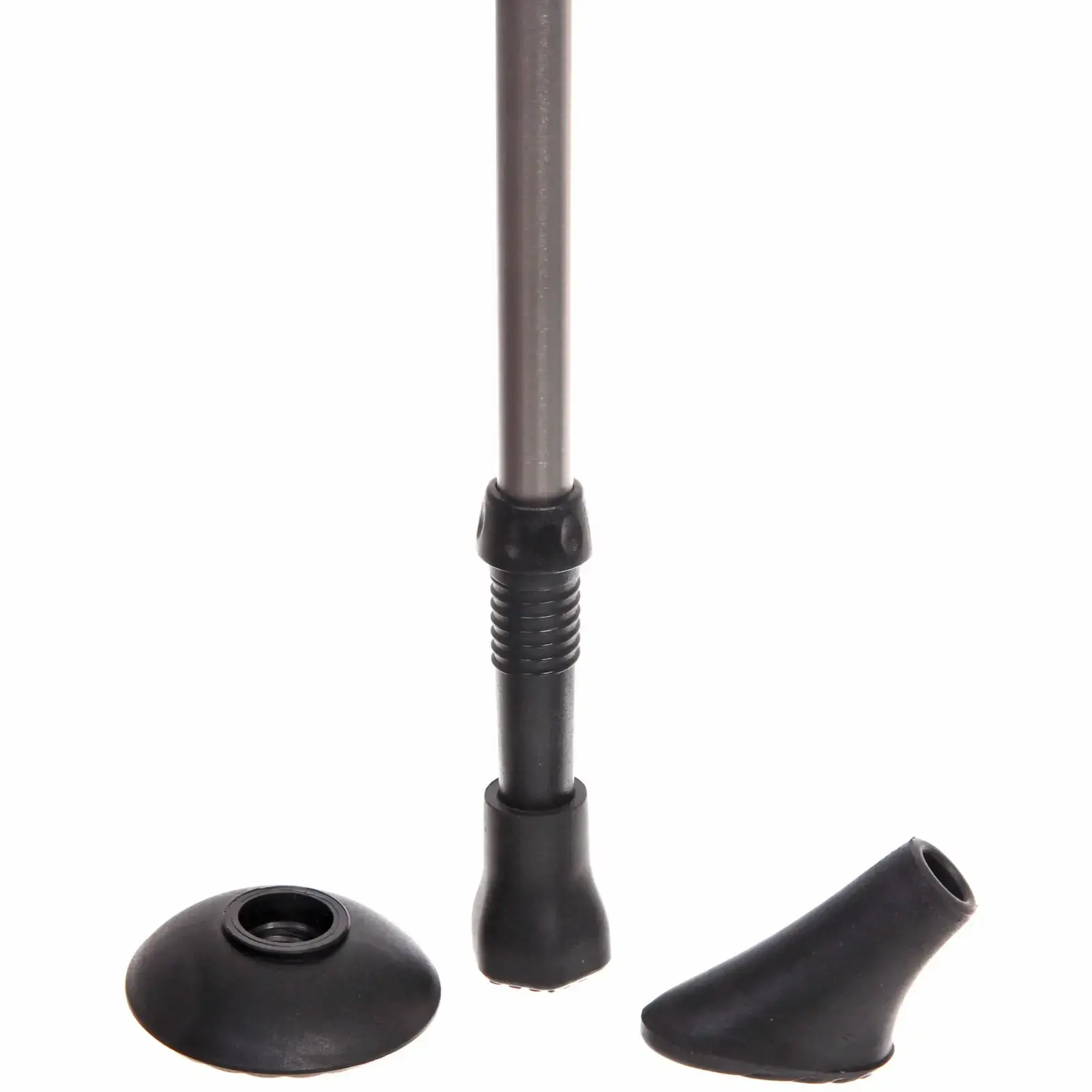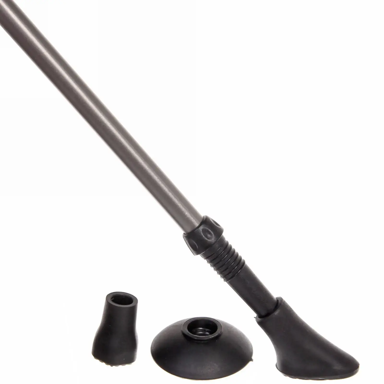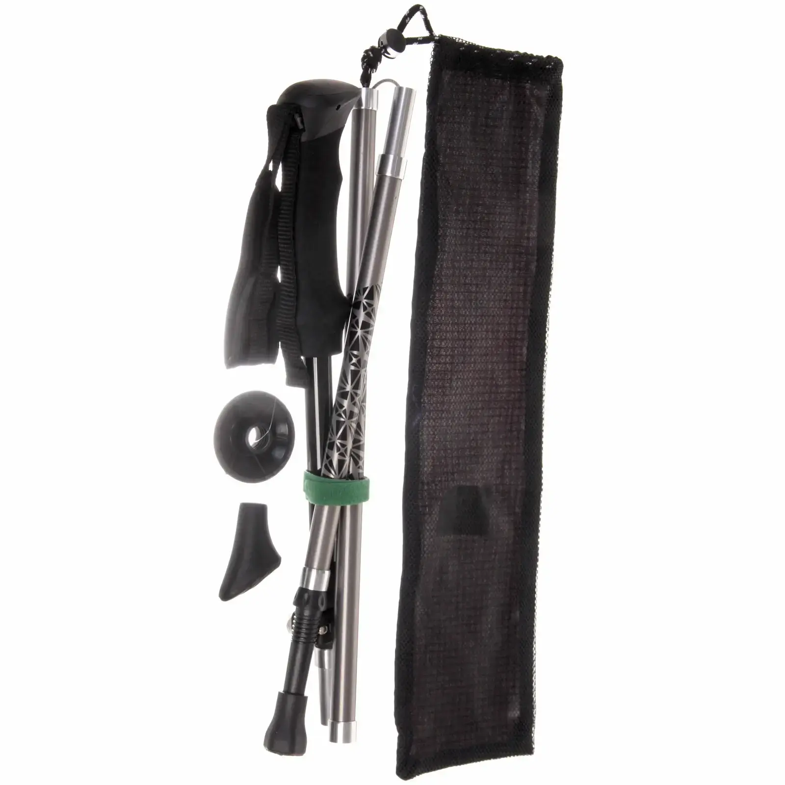 Палка имеет черный цвет с серебристыми элементами, что делает ее стильным аксессуаром для активного отдыха. Длина в сложенном виде позволяет легко поместить ее в рюкзак или сумку.
