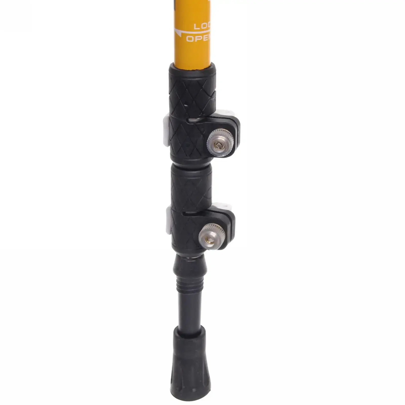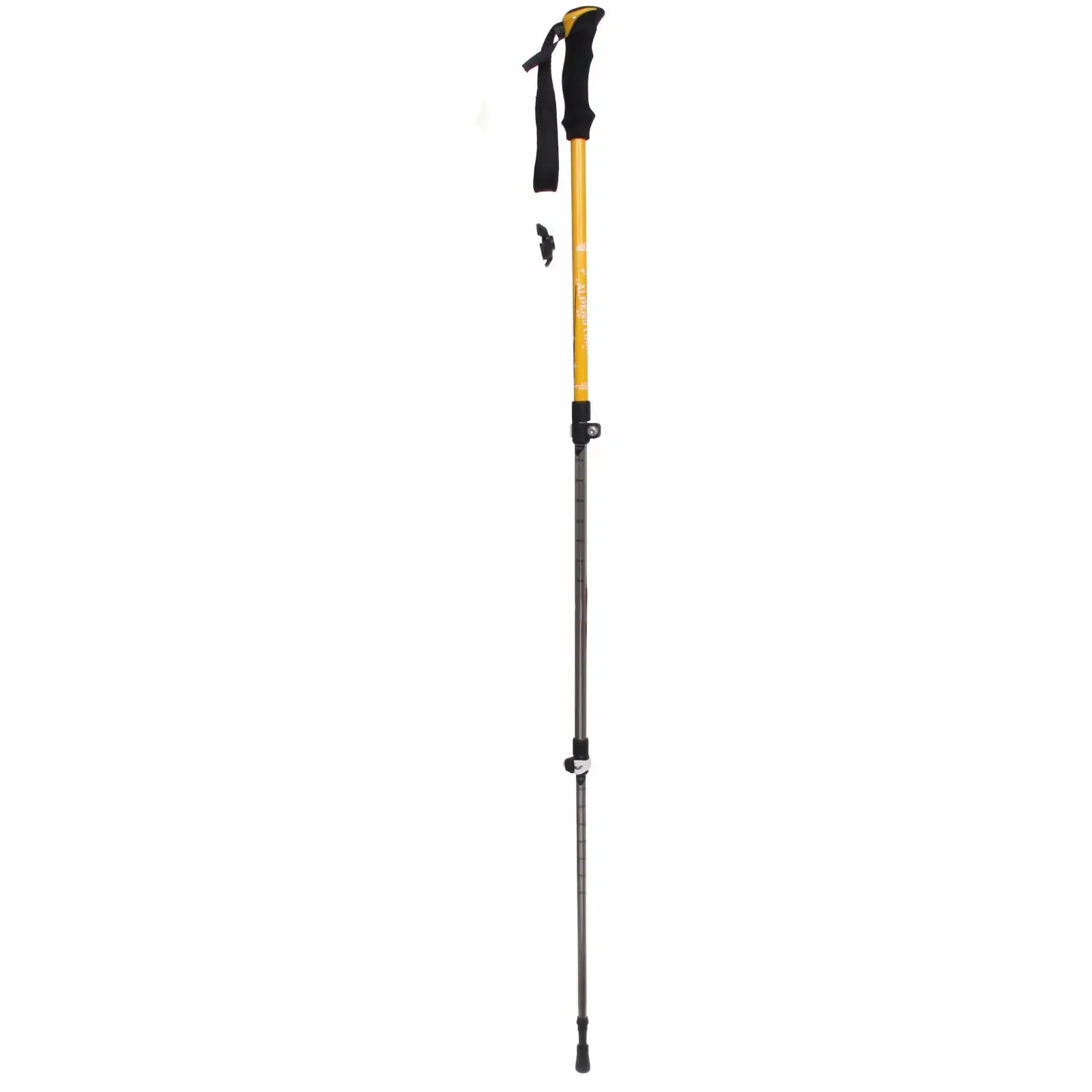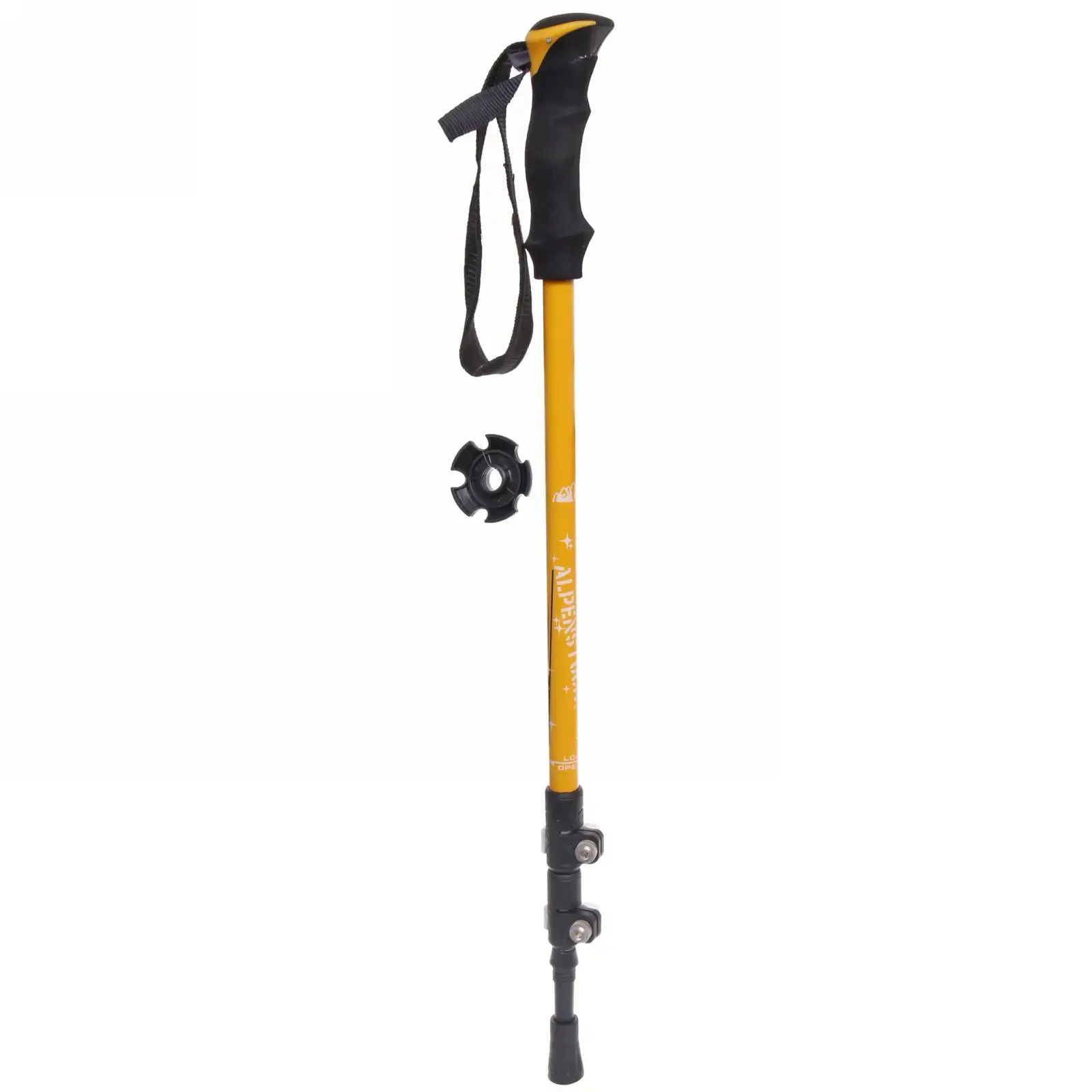 Сменные резиновые наконечники обеспечивают устойчивость на любом покрытии: асфальт, грунт, скользкие поверхности. Телескопическая система из 3 секций с клипс-замками позволяет быстро сложить палку до 65 см для транспортировки.