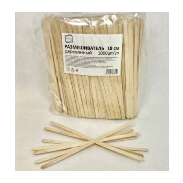 Материал: натуральное дерево. Размер одного размешивателя: 18 см. Количество в упаковке: 1000 штук. Цвет: светло-коричневый, характерный для древесины.