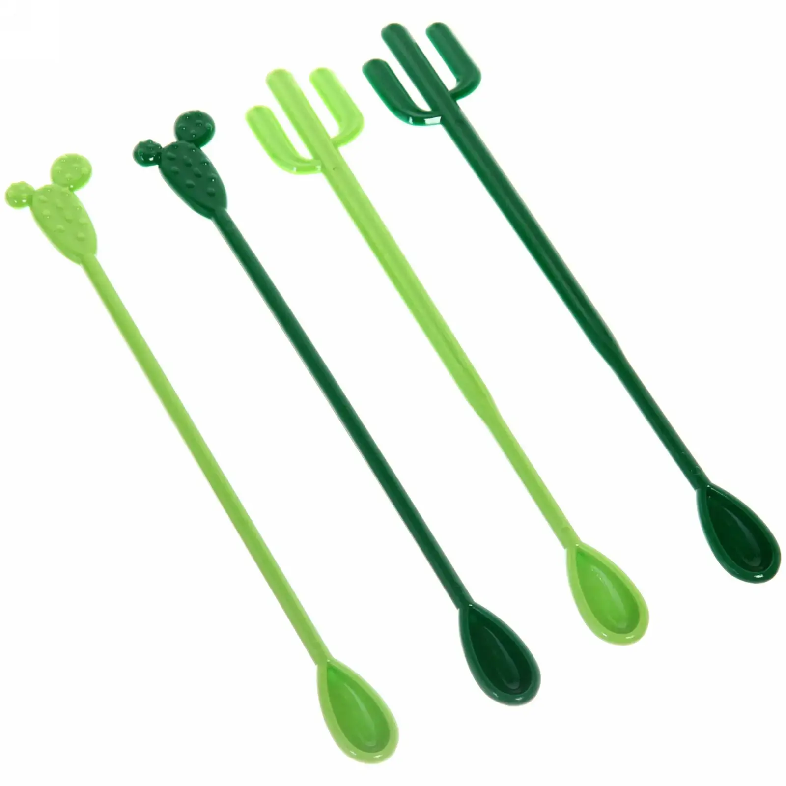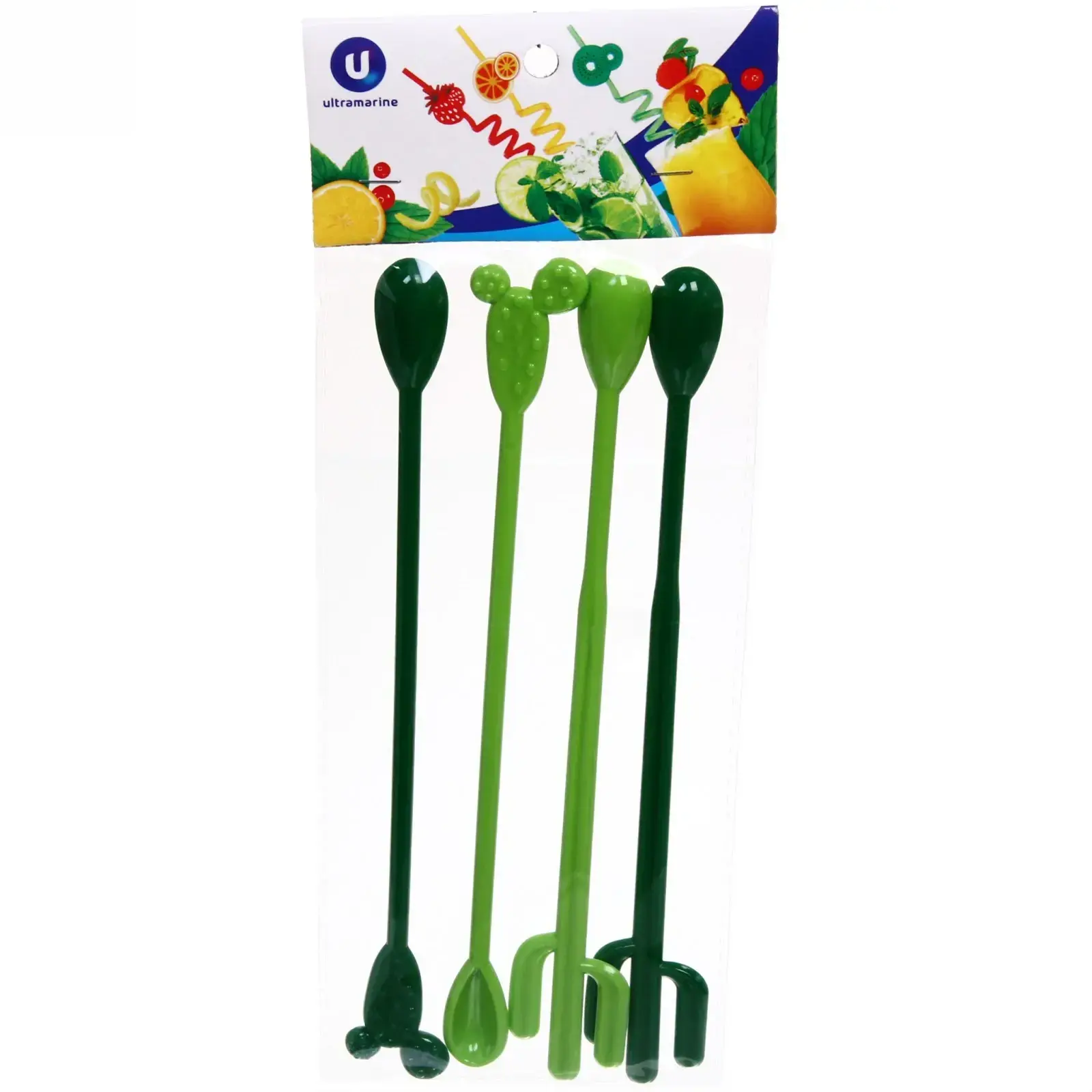 В наборе вы получите 4 палочки для коктейля, каждая из которых оформлена в стиле кактуса. Цвета варьируются от светло-зеленого до темно-зеленого, что добавляет разнообразия. Эти палочки не только функциональны, но и станут отличным элементом декора на вашем столе.