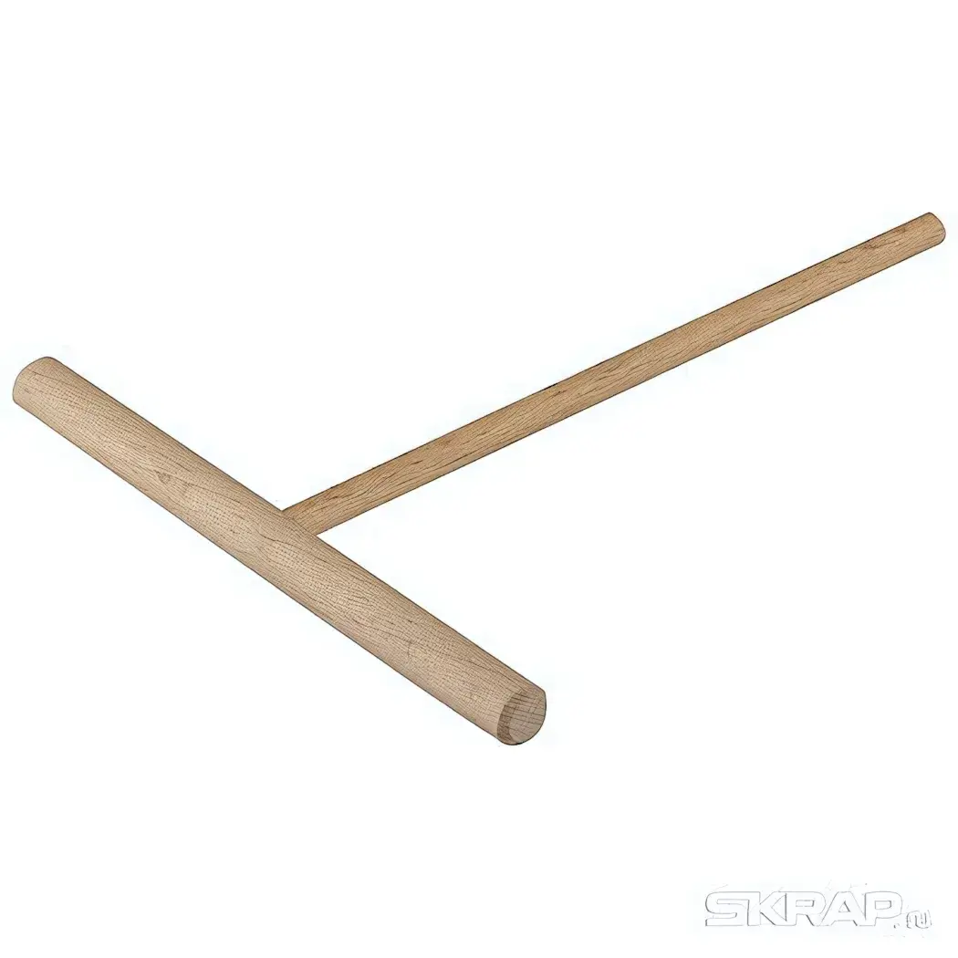 Палочка идеально подходит для приготовления блинов, пиццы и других тестяных изделий. Её длина в 80 см позволяет удобно работать с различными размерами сковород и поверхностей. Благодаря своей форме в виде буквы 'Т', инструмент обеспечивает комфортный захват и легкость в использовании.