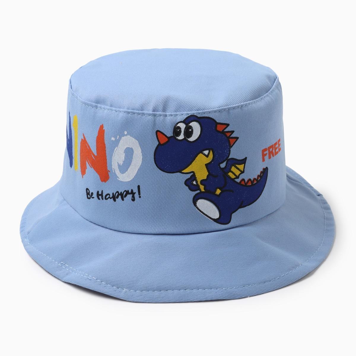 Панама детская "Дракоша" MINAKU, голубой, р-р 50см, хлопок 100%, защита от солнца