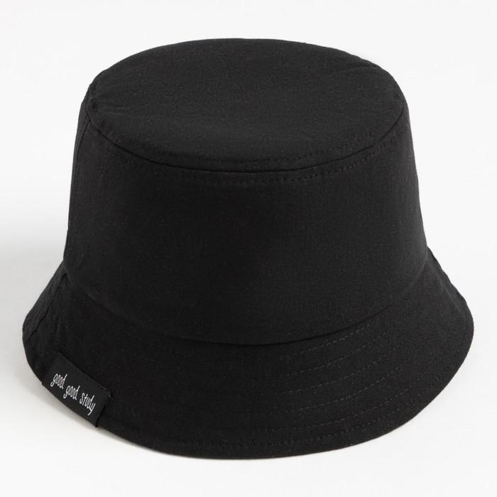 Панама хлопковая "Классика" черная, р-р 52, стильная, с надписью "girl, god, style"