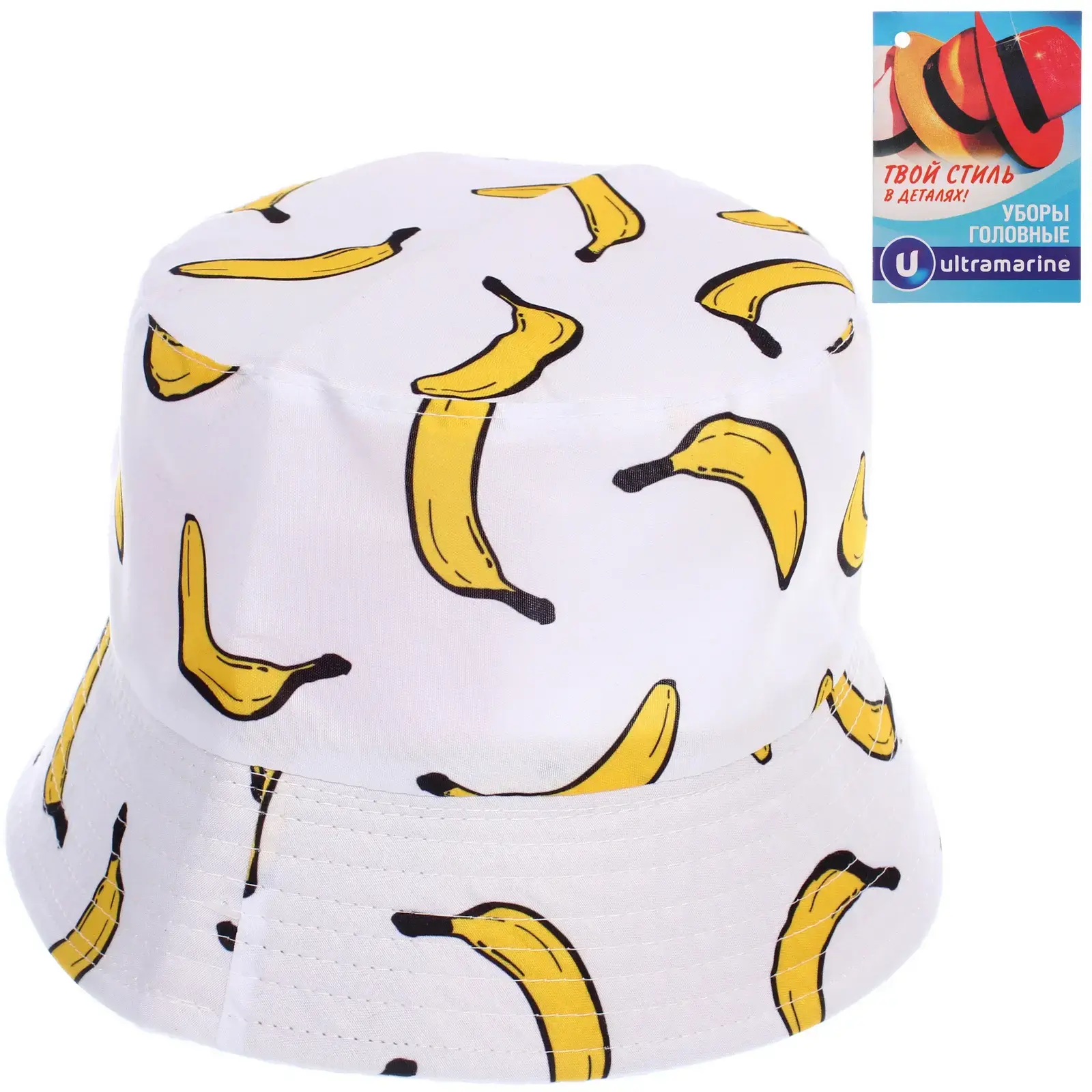 Панама «ЛЕТОиМОРЕ» — банановый рисунок, белый цвет, размер 58, полиэстер