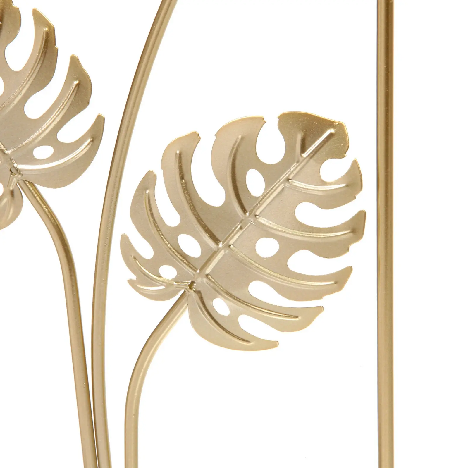 Рамка выполнена из гладкого металла, окрашенного в стойкий золотистый цвет, устойчивый к выцветанию. Листья закреплены на изящных изогнутых стеблях, что придаёт конструкции динамику и декоративную глубину. Изделие отгружается поштучно, в указанном цветовом варианте.