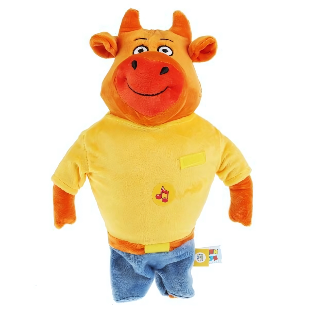 Эта яркая и приятная на ощупь мягкая игрушка в виде коровы станет любимым другом вашего ребенка. Нажмите на животик, чтобы услышать песенку из мультсериала «Оранжевая корова», что сделает игру интереснее и развивает звуковое восприятие малыша.