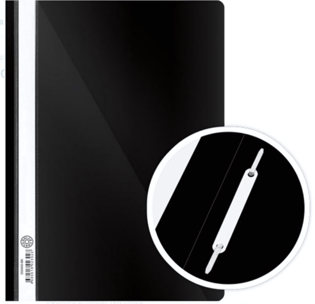 Чёрный цвет и блестящая отделка делают папку уместной в офисе, учебном заведении или домашнем архиве. Эргономичная конструкция с белой декоративной полосой сочетает функциональность с современным дизайном.