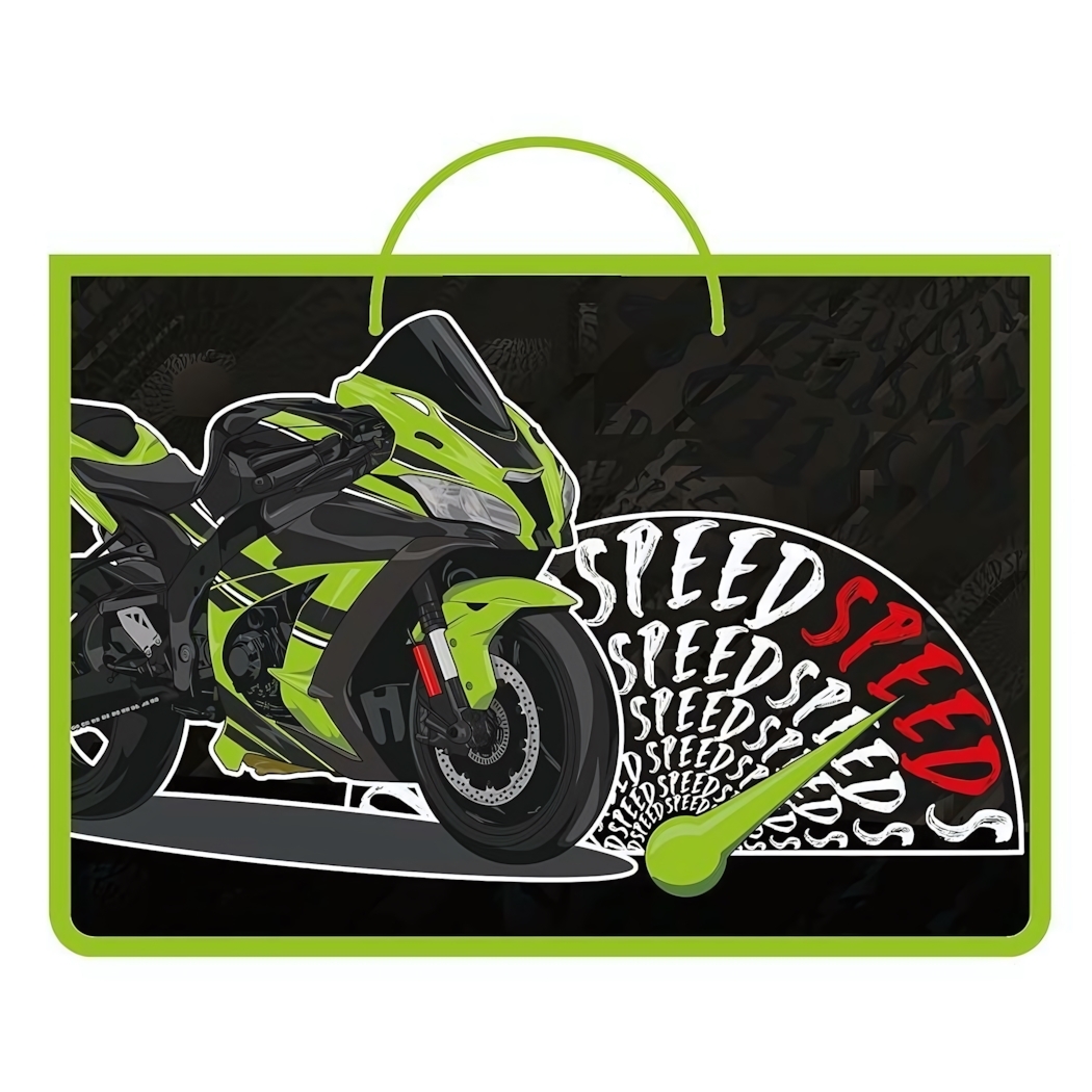 Практичная пластиковая папка с оригинальным принтом спортивного мотоцикла станет любимым аксессуаром вашего ребёнка. Сочетание чёрно-зелёных тонов с жёлтыми акцентами создаёт энергичный образ, который подчеркнёт индивидуальность школьника.
