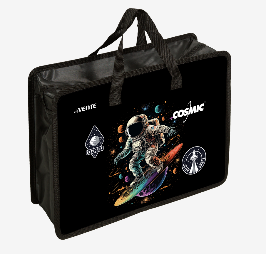 Папка А4 "Cosmic" от deVENTE — это идеальное сочетание практичности и современного космического стиля. Яркий принт с астронавтом и планетами привлечет внимание и подчеркнет вашу индивидуальность.