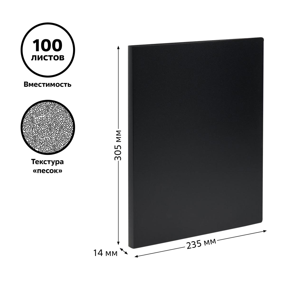 - Прочный материал: Изготовлена из качественного черного пластика толщиной 500 мкм с текстурой "песок", что придает папке стильный внешний вид и устойчивость к износу.
