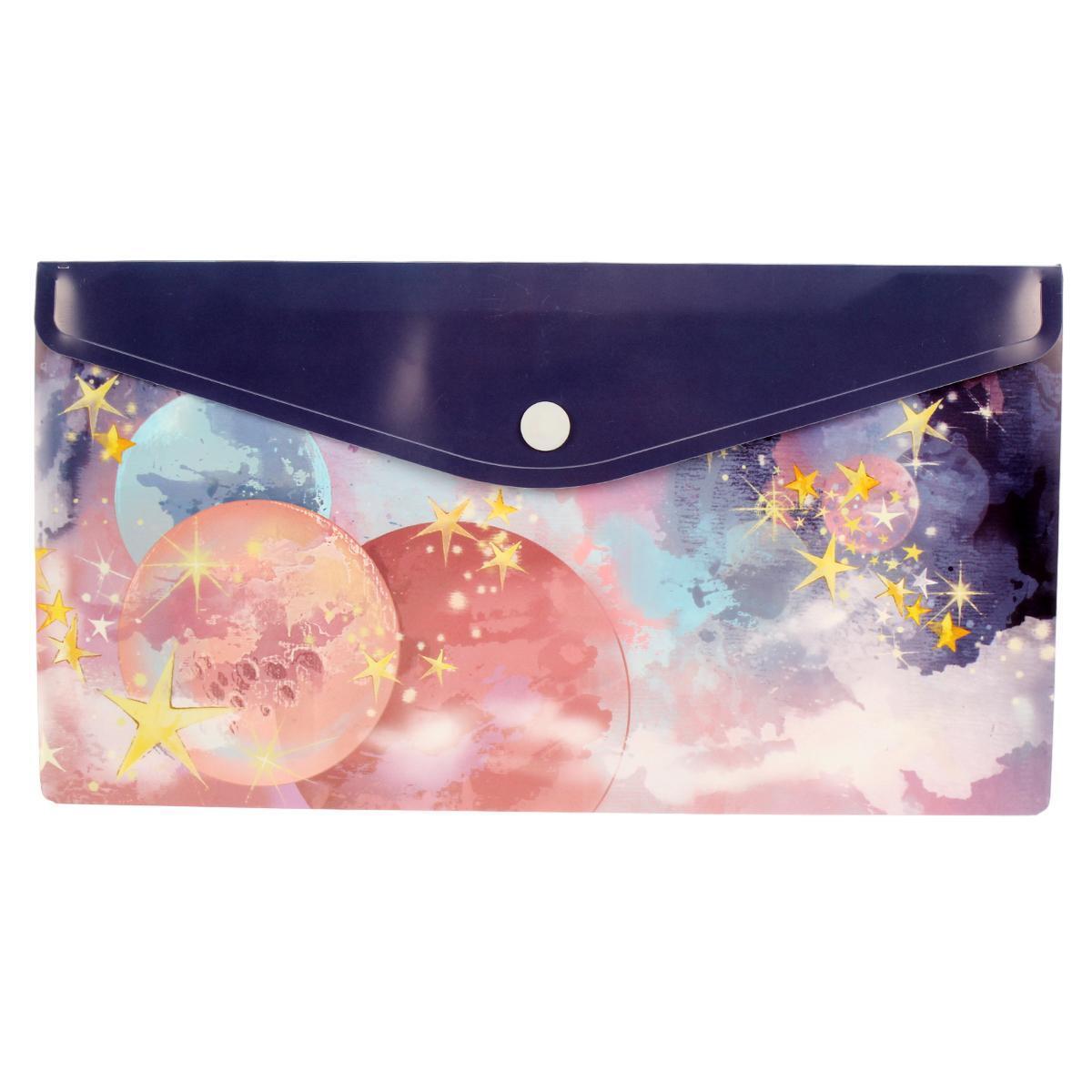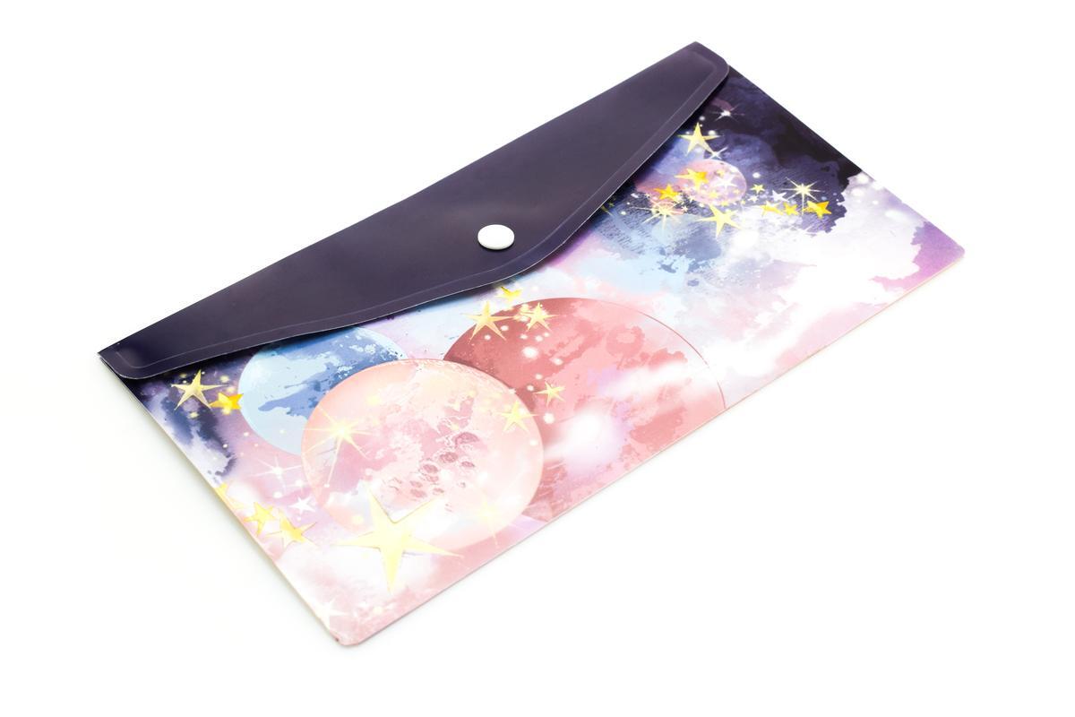Эта папка формата 26x14 см идеально подходит для хранения важных бумаг, заметок и рисунков. Яркий космический дизайн с планетами и звездами поднимет настроение и добавит красок в вашу повседневную жизнь. Папка изготовлена из прочного пластика, что обеспечивает надежную защиту документов от повреждений и влаги.