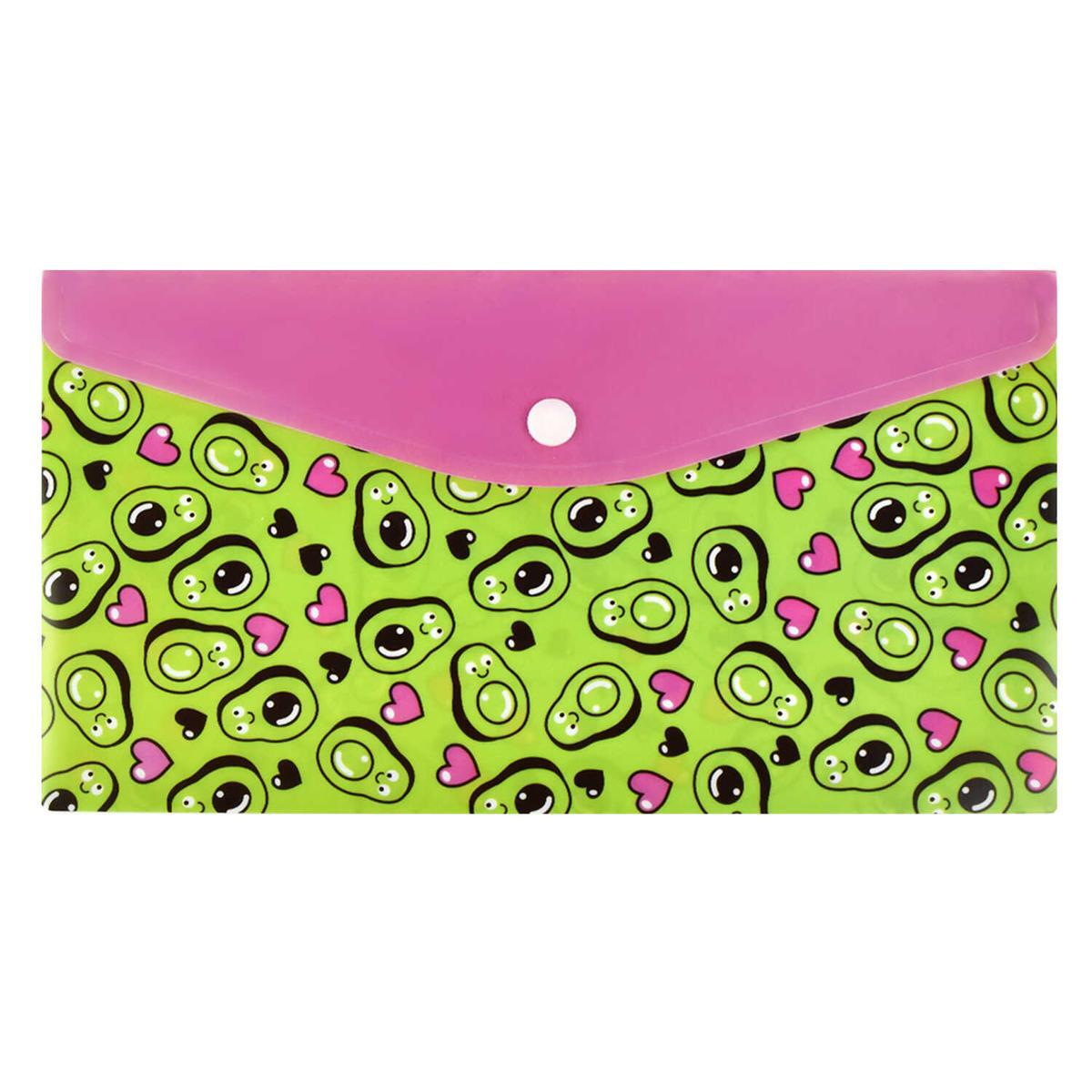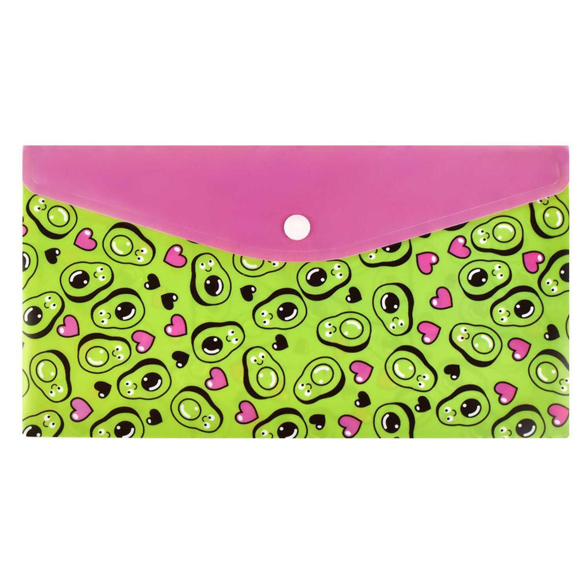 Папка для документов на кнопке 26x14см, пластик, "Авокадо паттерн", яркий дизайн