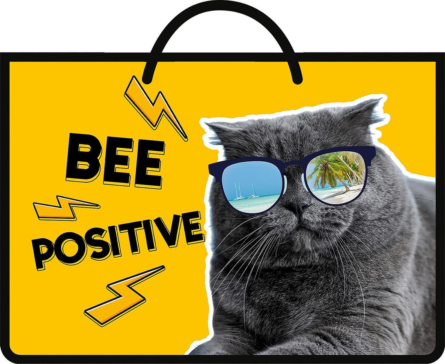 Папка детская А4 пластиковая «Позитивный кот 2025», ручки-тесьма, 335x235x55 мм, яркий дизайн
