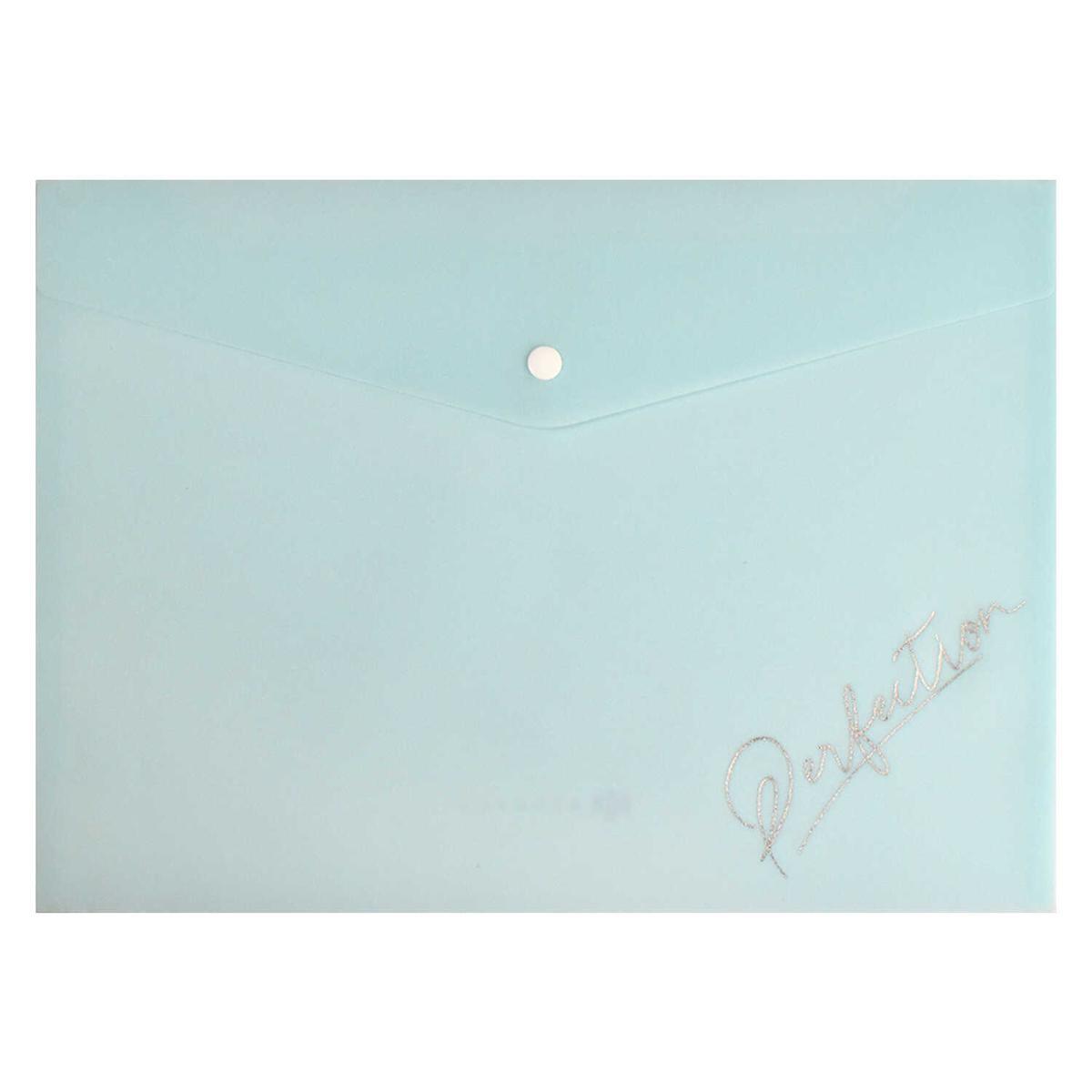 Папка для документов А4 "Пастельный мятный глиттер", пластик, кнопка, 33х23.5 см