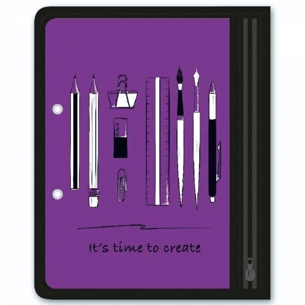 - Яркий дизайн: Фиолетовый цвет и оригинальный рисунок "Канцелярия на фиолетовом" поднимут настроение и добавят красок в ваш рабочий день.
