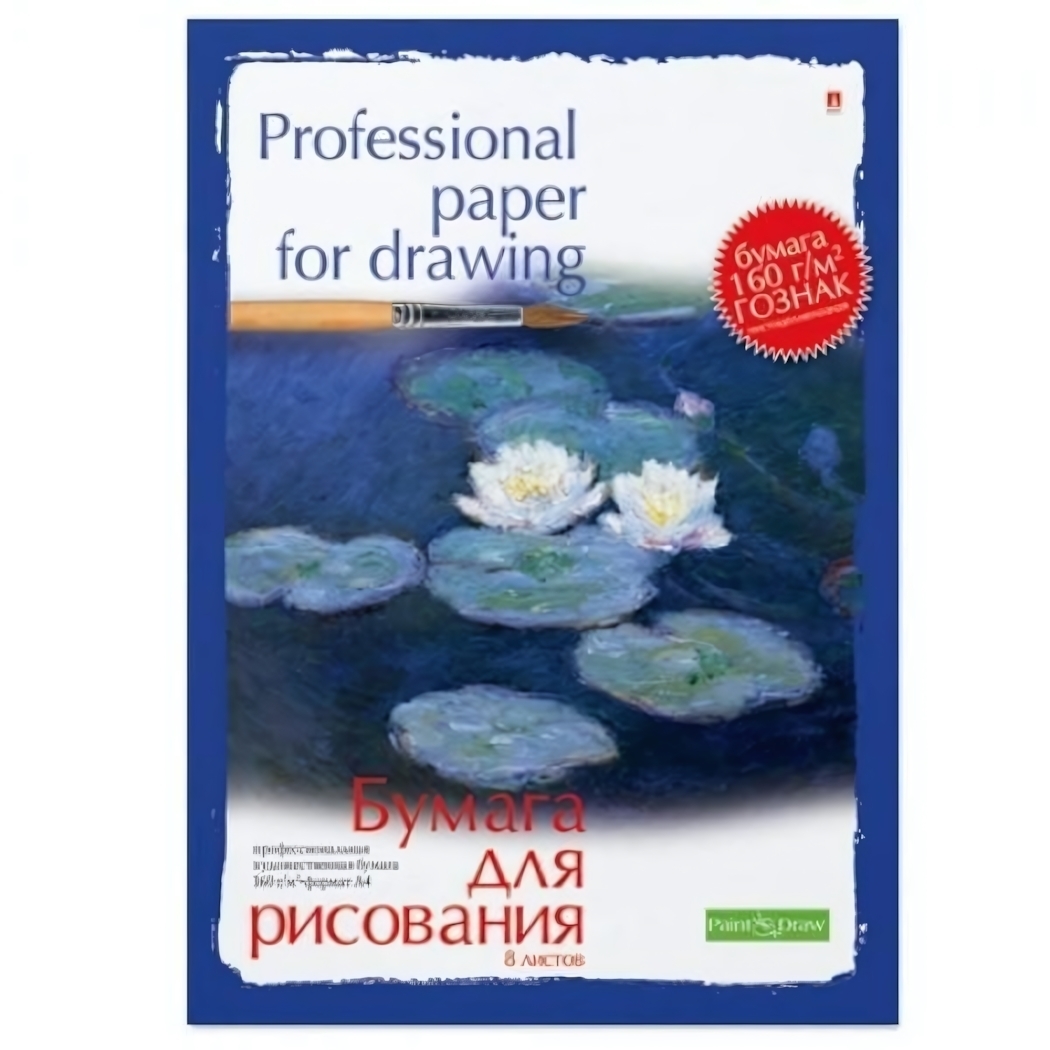 Папка для рисования профессиональная А4, 8 листов, 160 г/м², комплект 10 шт., бумага ГОЗНАК
