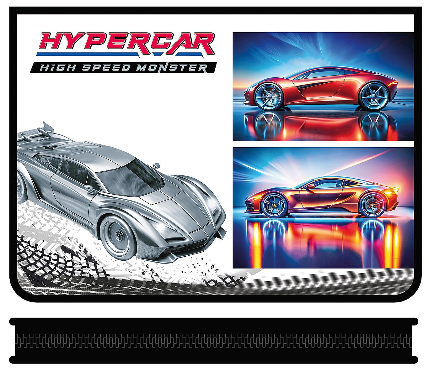 Эта папка для тетрадей формата А4 — отличный выбор для школьников, студентов и офисных сотрудников. Благодаря молнии вокруг она надежно защищает бумаги от случайных повреждений и потери. Изготовленная из прочного пластика с яркой печатью 'Hypercar 2025', она привлекает внимание и создает динамичный имидж.