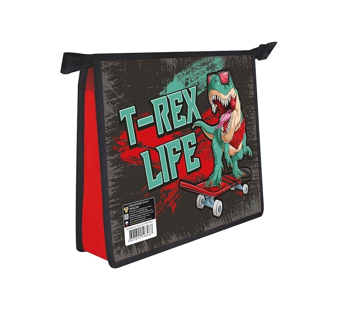 Папка для тетрадей А5 пластиковая с молнией "T-Rex 2023", 23x19x5 см