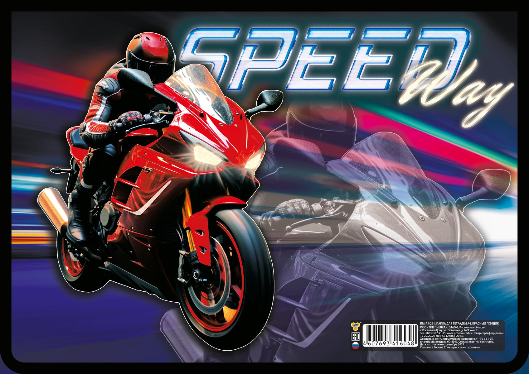 Отгружается в индивидуальной упаковке. Дизайн соответствует изображению — мотоцикл красного цвета с элементами золотой отделки и надписью «SPEED Way».