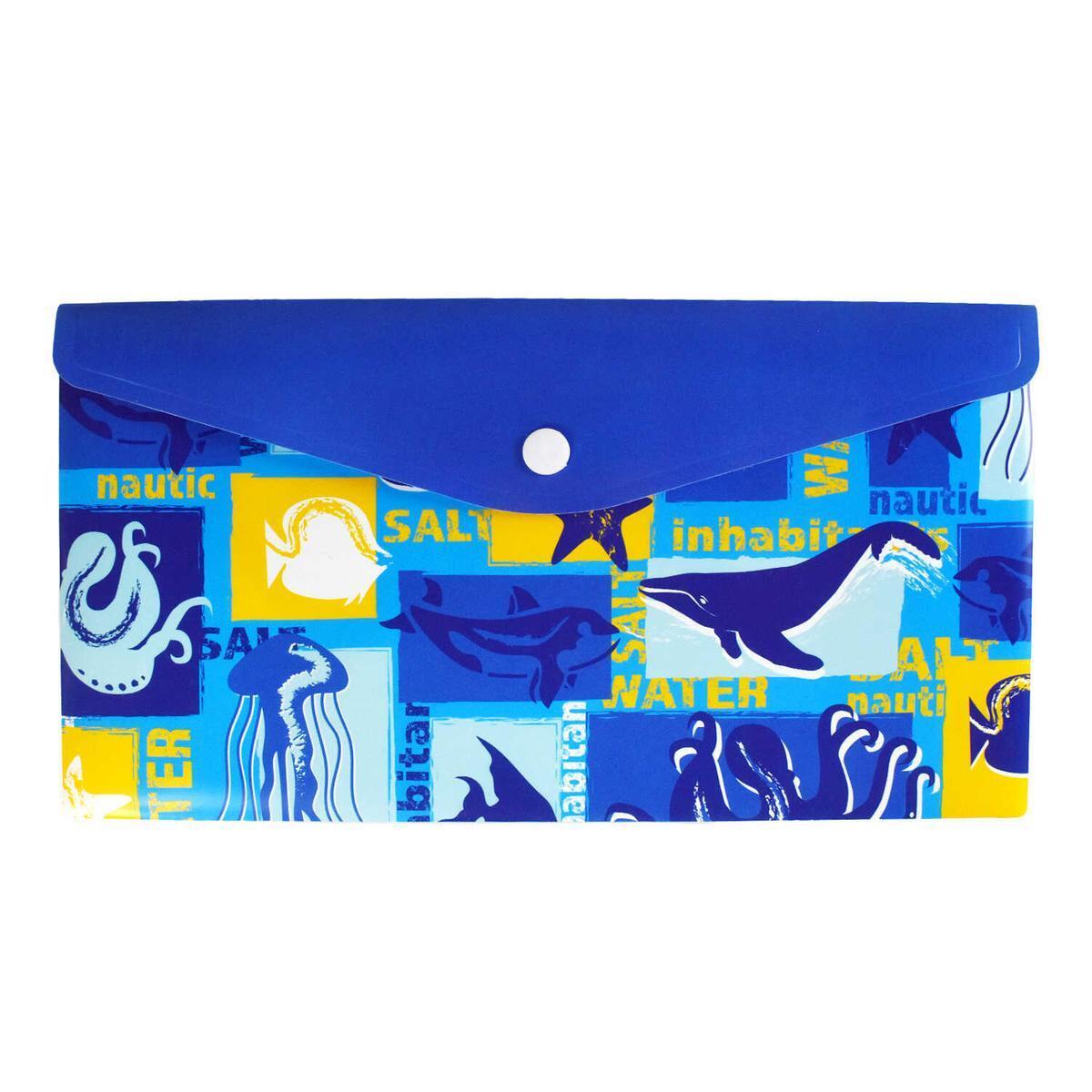 Обеспечьте безопасность и аккуратность ваших документов с помощью этой пластиковый папки-конверта размером 26x14 см. Ее яркий водный дизайн с изображениями морских обитателей создает приятную атмосферу и помогает легко ориентироваться в документах.