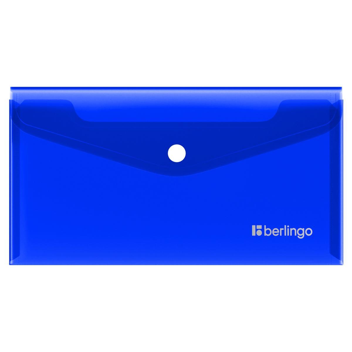 Папка-конверт для документов Berlingo "No Secret", C6, синяя, пластиковая с кнопкой, 223х120 мм