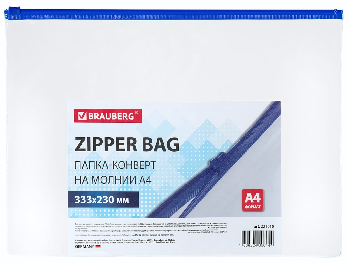 Ищете удобный способ хранить и переносить важные документы? Папка-конверт на молнии BRAUBERG станет вашим незаменимым помощником. Прочный пластик толщиной 0,11 мм защищает содержимое от пыли, влаги и механических повреждений.
