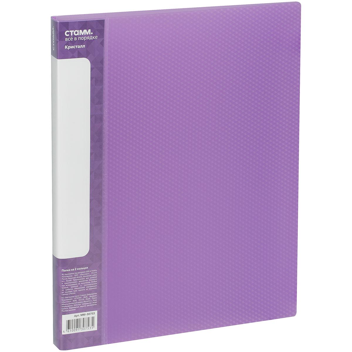 Папка на 2 кольцах «Кристалл» А4, 700 мкм, фиолетовая, до 120 листов, корешок 25 мм