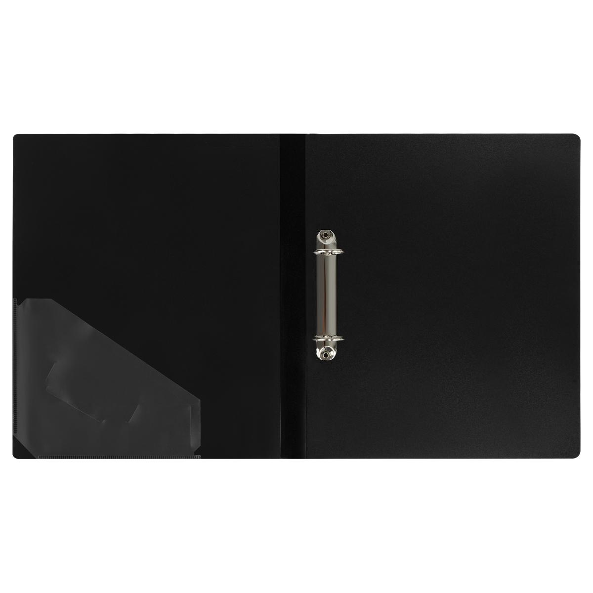 Папка на 2 кольцах А4, черная, 'Стандарт', до 120 листов, пластик 700 мкм