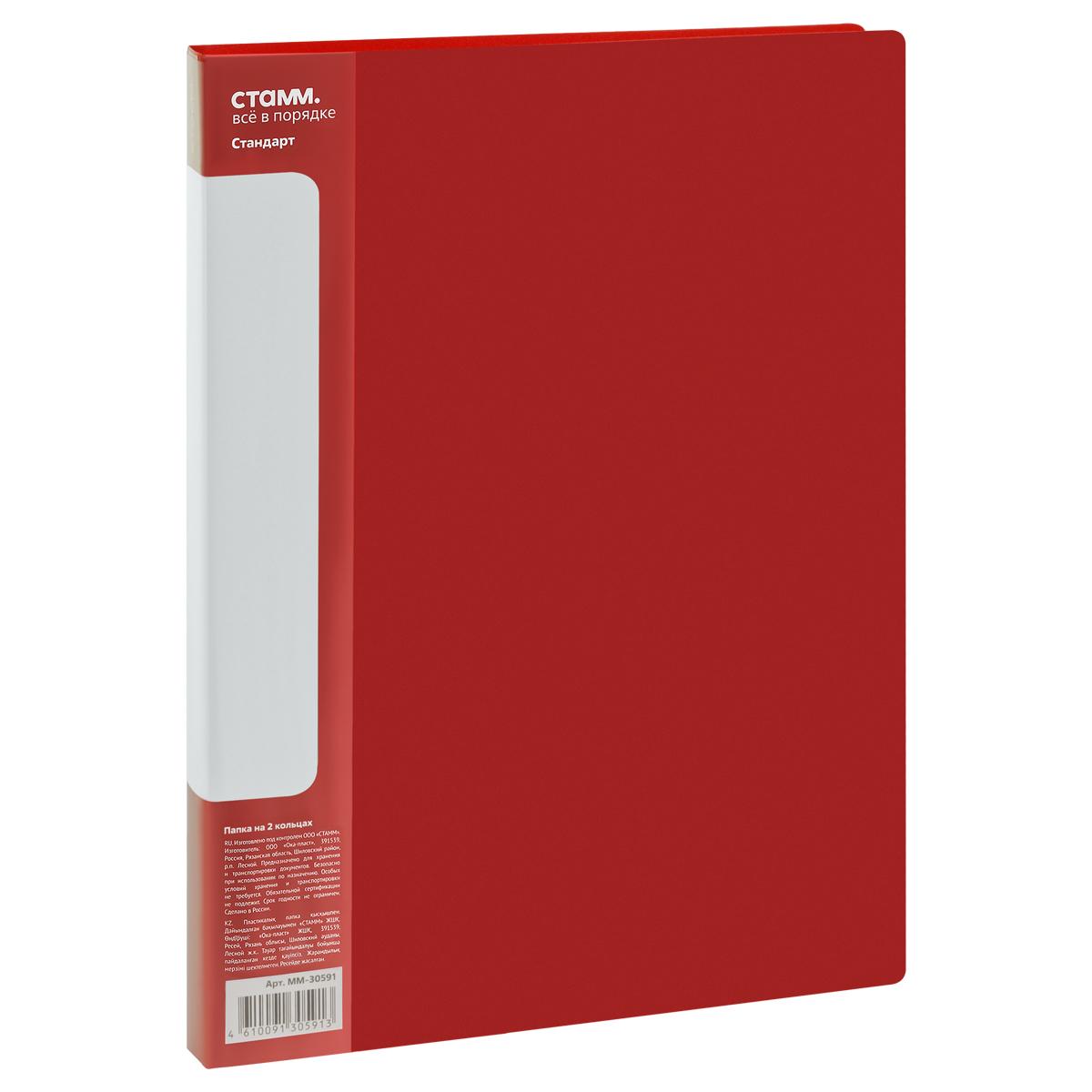 Папка на 2 кольцах А4, красная, для 120 листов, полипропилен 700 мкм