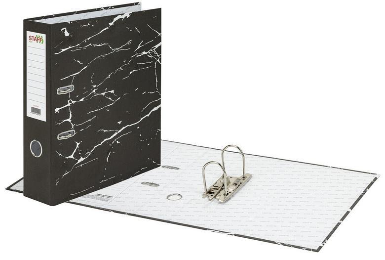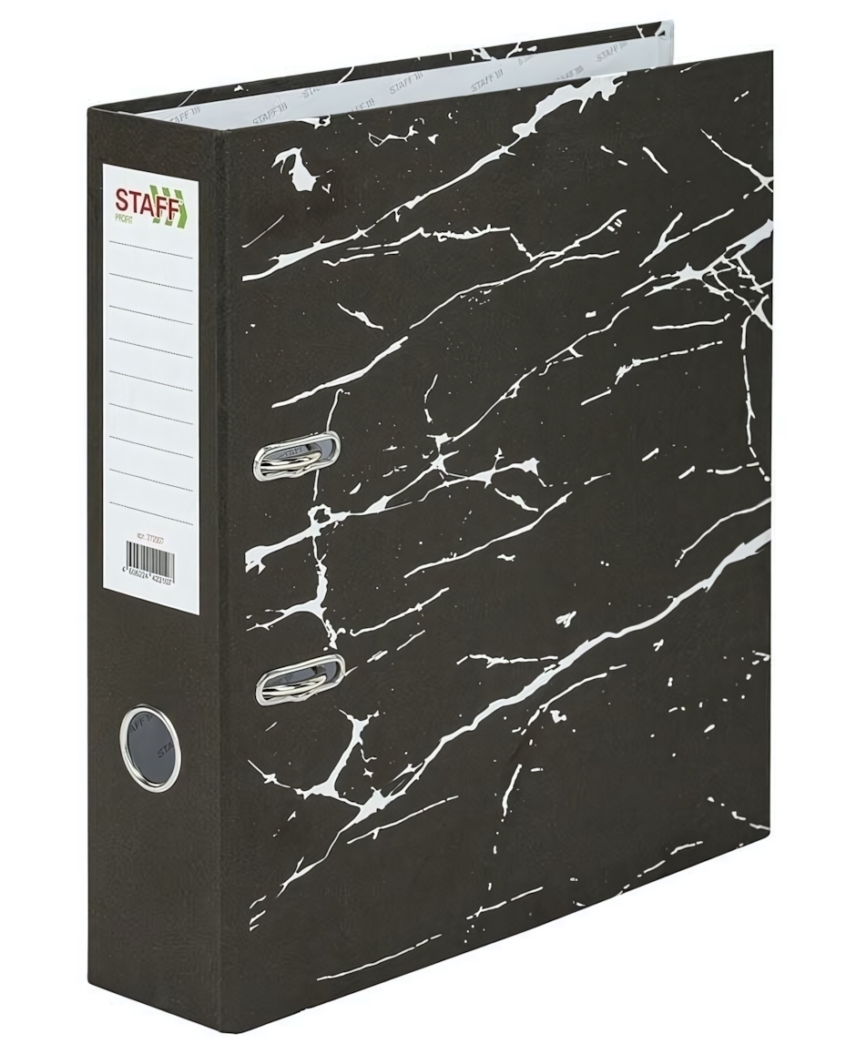Папка-регистратор А4, черная "Profit", мраморное покрытие, 75мм, съемный механизм