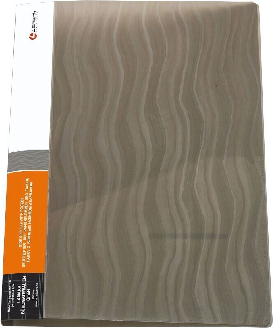 Папка-файл Lamark "Волна" с боковым зажимом, 0.6мм, серый, с карманом, A4