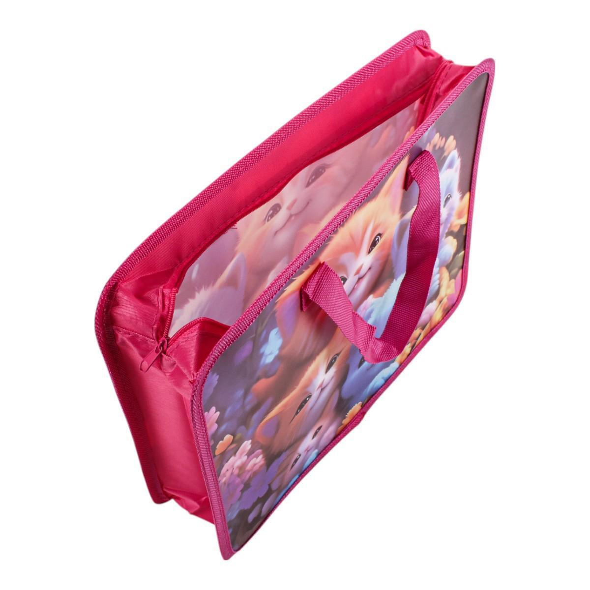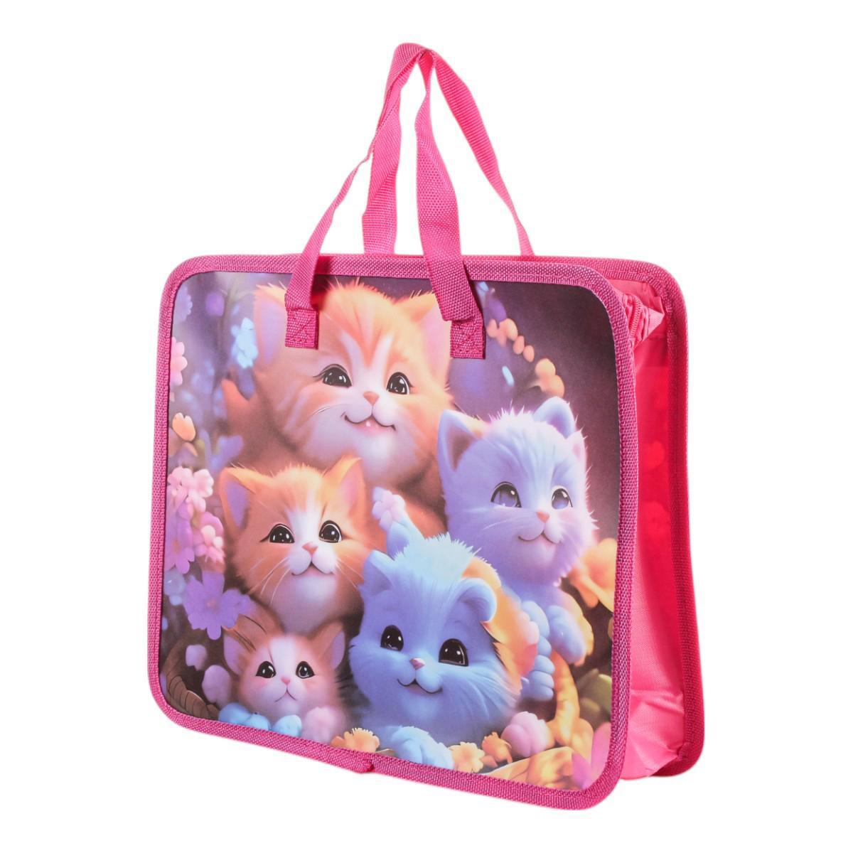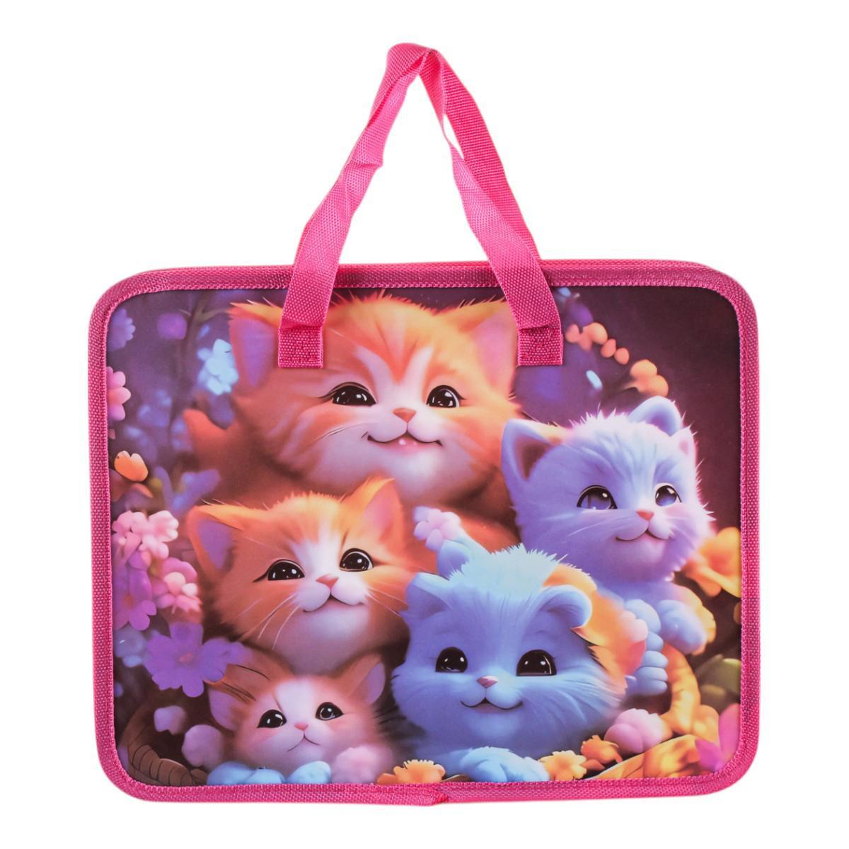 Папка с ручками А4 "Кошечки", пластик, молния, 80мм, для творчества и документов