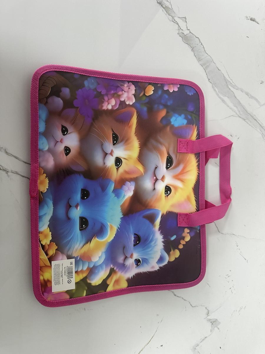 Папка с очаровательным принтом котят станет вашим надежным помощником в хранении документов и художественных принадлежностей. Яркий дизайн с мультяшными персонажами создает позитивное настроение, а прочная конструкция гарантирует долговечность использования.