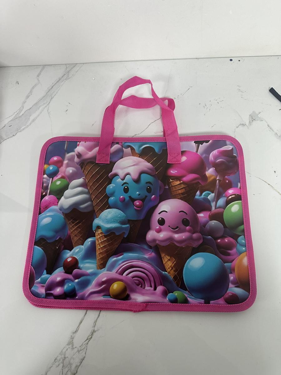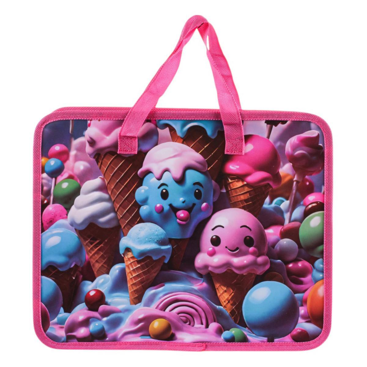 Папка с ручками А4 «Мороженое» на молнии, пластик, текстильная окантовка, 80 мм