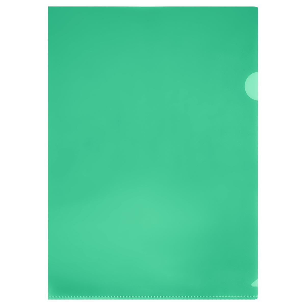 Папка-уголок А4, прозрачная/зеленая, полипропилен 100мкм, для 50 листов