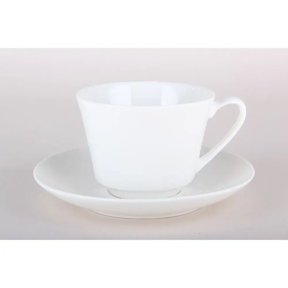 Комплектация: 1 чашка + 1 блюдце. Материал: высококачественная керамика. Цвет: классический белый. Уход: подходит для мытья в посудомоечной машине и использования в микроволновой печи.