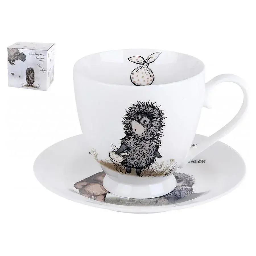 Пара чайная «Ежик в тумане» круглая, фарфор, 440мл, чашка с блюдцем