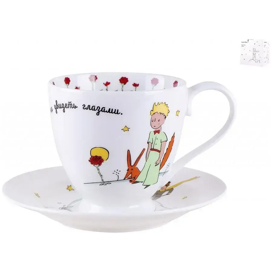Погрузитесь в атмосферу философской сказки с чайной парой, украшенной иллюстрациями из «Маленького принца». Изысканный дизайн превратит обычное чаепитие в момент эстетического удовольствия.