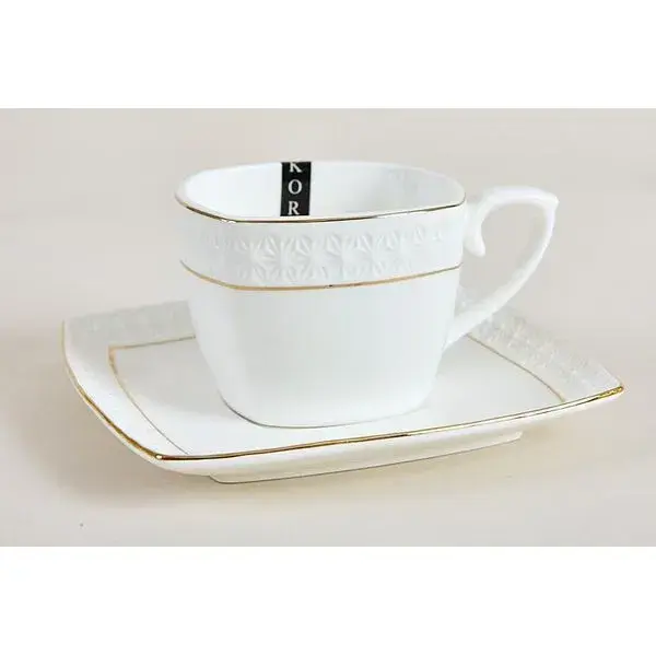 Кофейная пара квадратная 90мл «Снежная королева», керамика, белый с золотым декором